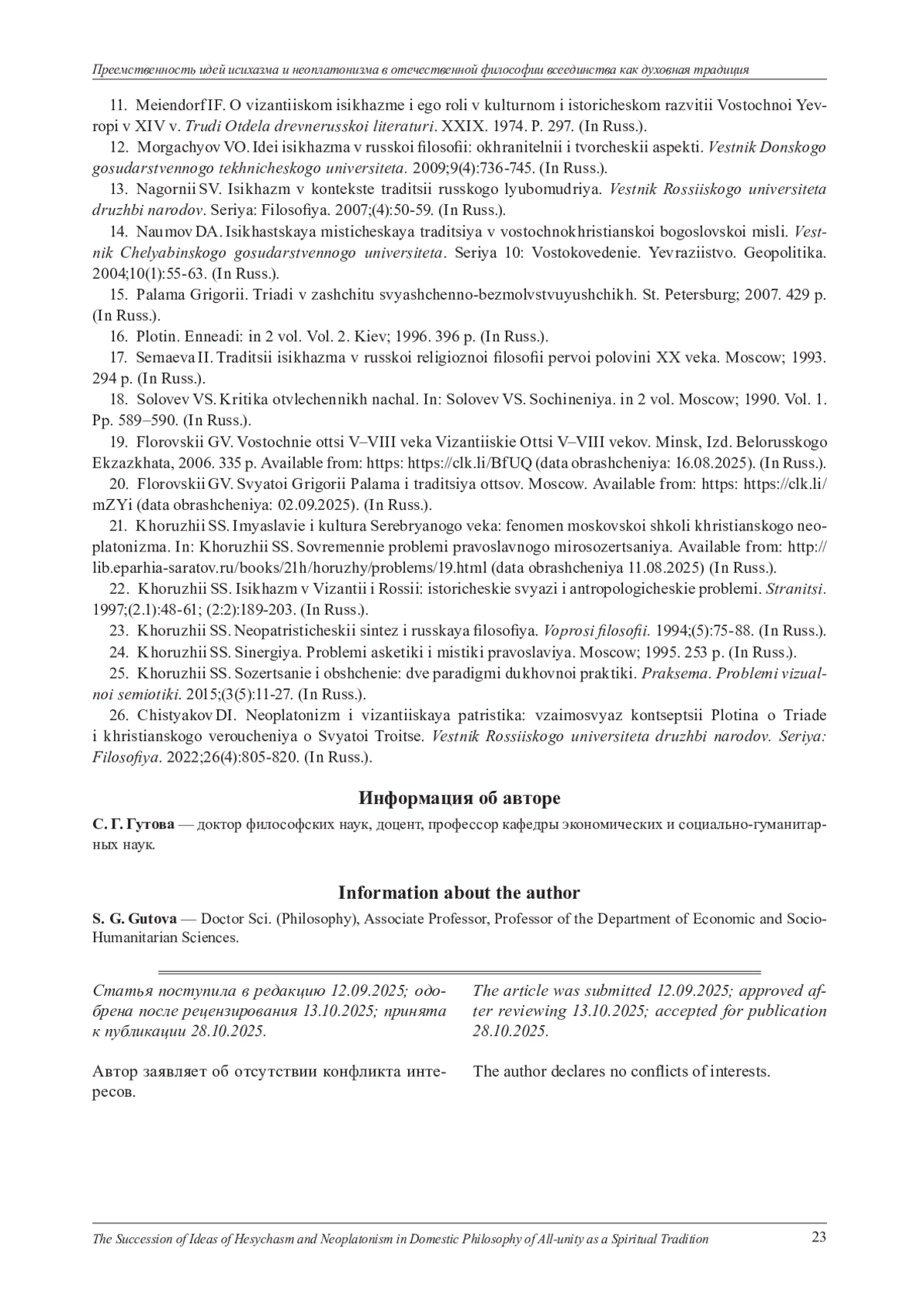 23. Хоружий С. С. Неопатристический синтез и русская философия // Вопросы философии. 1994. № 5. С. 75-88. EDN: SCDTXJ