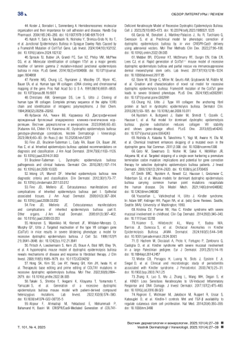 49. Кубанов АА, Чикин ВВ, Карамова АЭ. Дистрофический врожденный буллезный эпидермолиз: клинико-генетические корреляции. Вестник дерматологии и венерологии. 2023;99(4):60-83. DOI: 10.25208/vdv13281