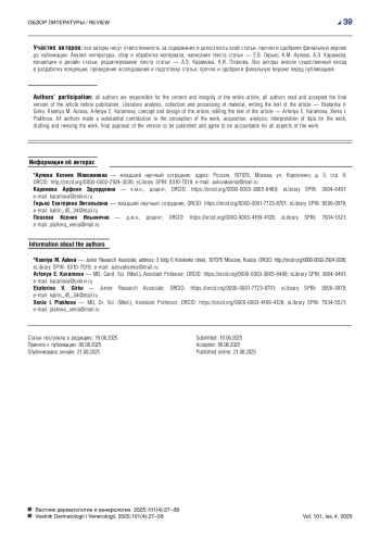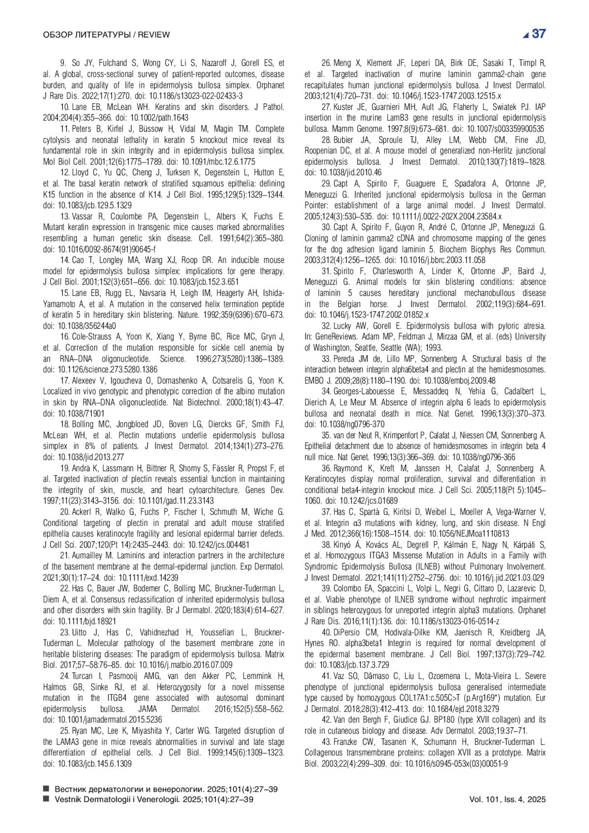 4. Коталевская Ю.Ю., Степанов В.А. Молекулярно-генетические основы буллезного эпидермолиза. Вавиловский журнал генетики и селекции. 2023;27(1):18-27. DOI: 10.18699/VJGB-23-04