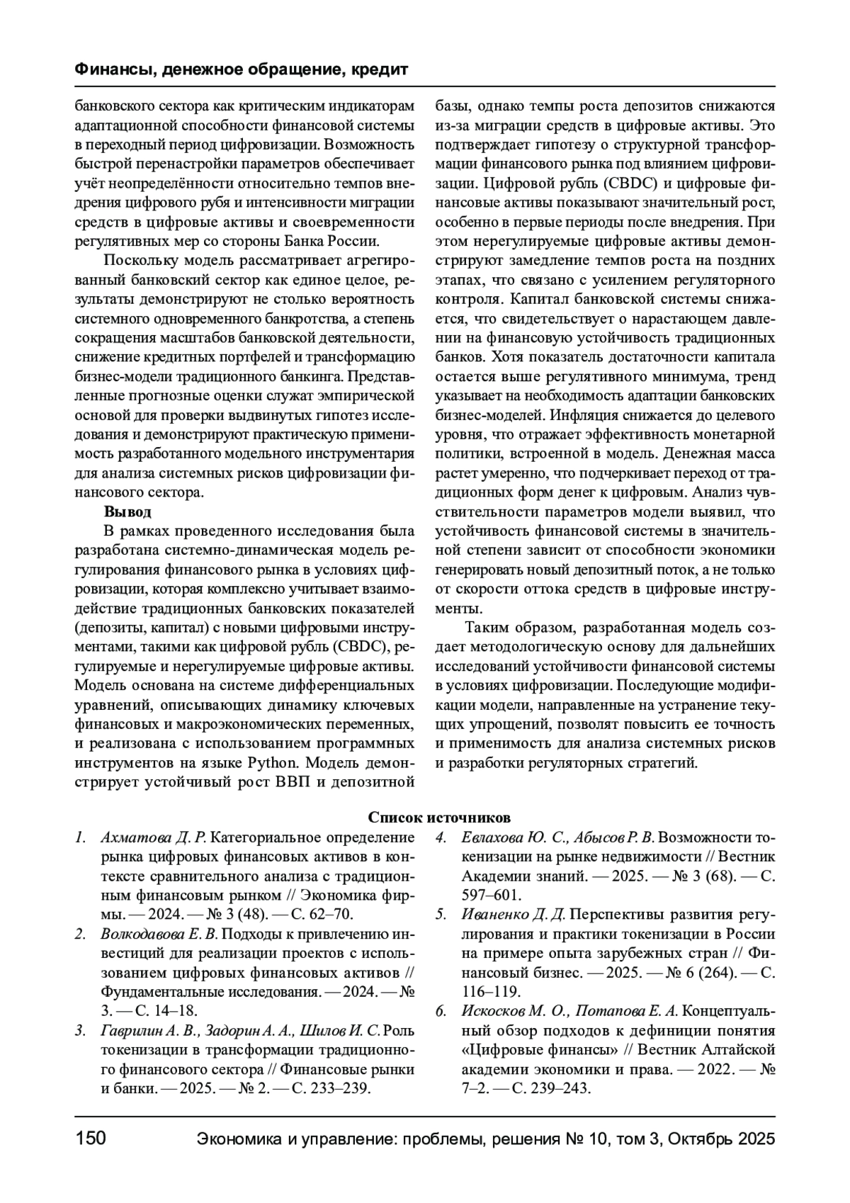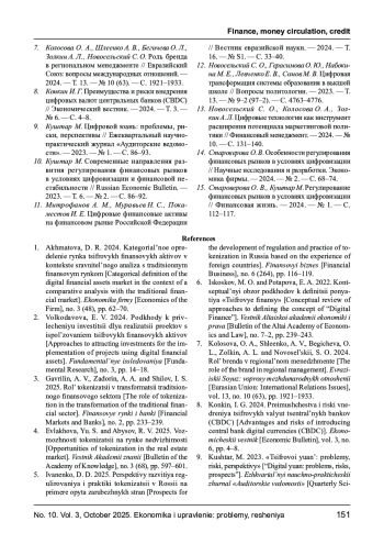 5. Иваненко Д. Д. Перспективы развития регулирования и практики токенизации в России на примере опыта зарубежных стран // Финансовый бизнес. - 2025. - № 6 (264). - С.116-119. EDN: UJVUDQ
