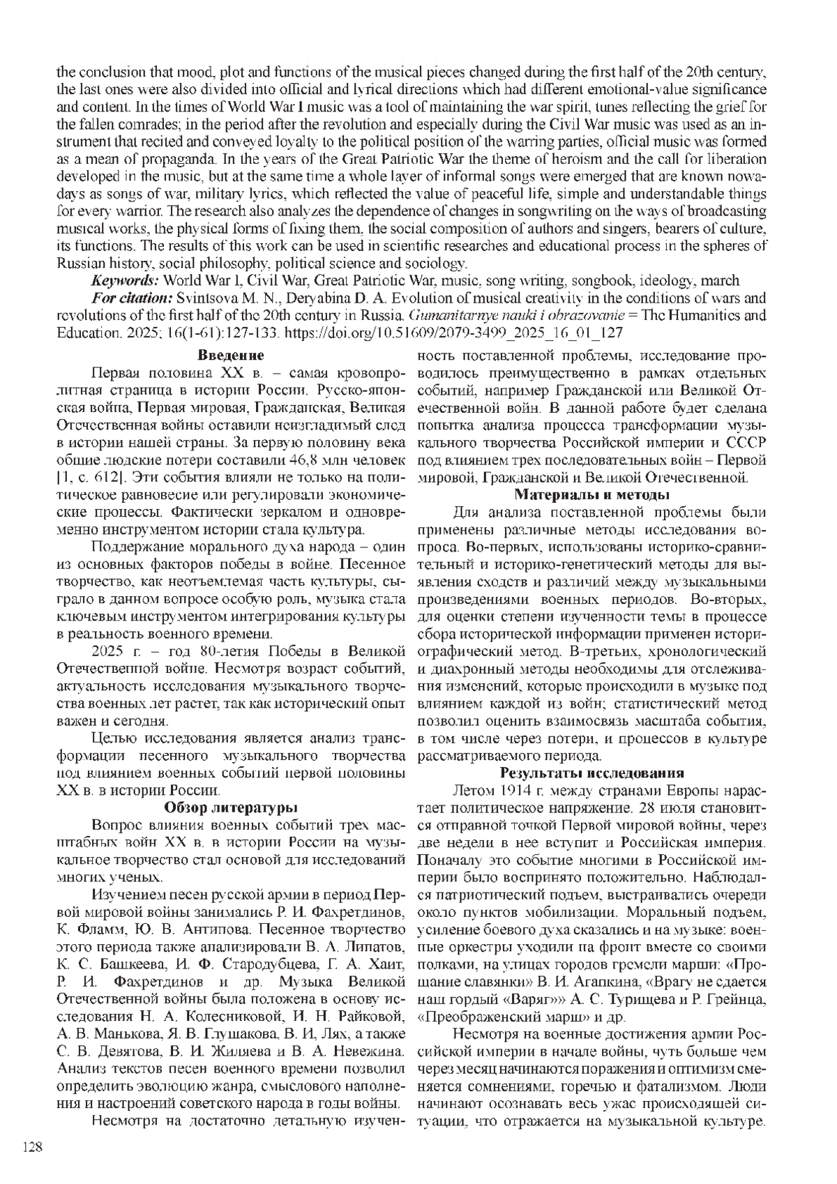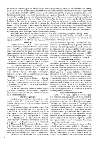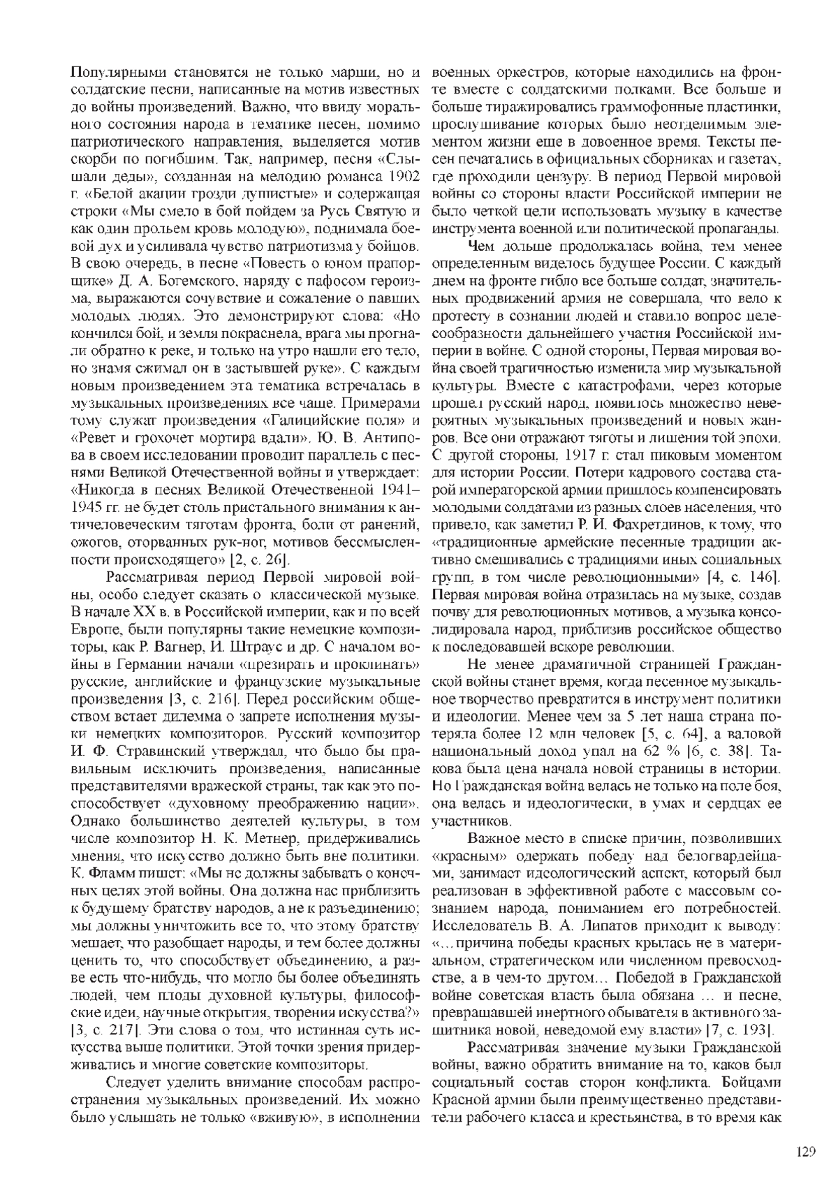 3. Фламм К. Забытая война, забытые звуки? Русская музыка в Первой мировой войне // Искусство музыки: теория и история. 2022. № 26. С. 206-235. EDN: KDQIHT
