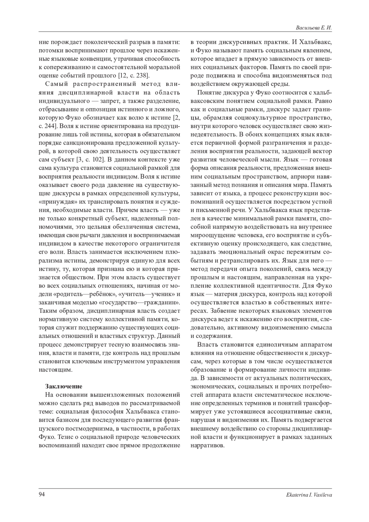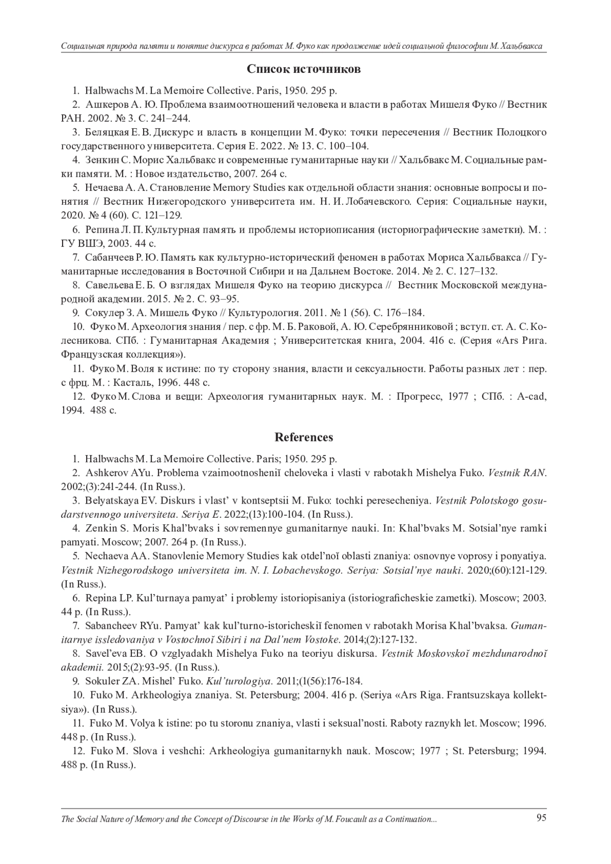 3. Беляцкая Е. В. Дискурс и власть в концепции М. Фуко: точки пересечения // Вестник Полоцкого государственного университета. Серия Е. 2022. № 13. С. 100-104.