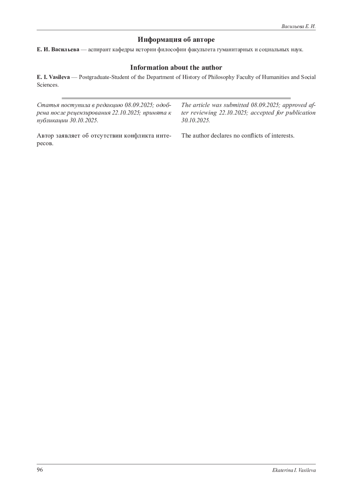 Рассматривается проблема субъективности в контексте феноменологической этики и экзистенциальной философии, с акцентом на анализе концепта il y a у Эммануэля Левинаса. Автор сопоставляет левинасовское описание анонимного бытия с экзистенциальным опытом, представленным в романе Ж.-П. Сартра «Тошнота», и выявляет различие между страхом перед ничто и чувством «прикованности к бытию». Особое внимание уделяется феномену деперсонализации и психопатологическим описаниям состояния, близкого к il y a, на примере работ Э. Минковского. В статье проводится критический анализ дуалистических схем классической и неклассической философии, а также обсуждается невозможность выхода из состояния анонимного бытия только за счет рационального акта сознания. Подчеркивается, что для Левинаса подлинная субъективность возникает не через оппозицию света и тьмы, а благодаря эпифании Другого, которая радикально трансформирует поле значений. Такой подход позволяет по-новому взглянуть на границы этики, субъективности и структуры человеческого опыта, раскрывая актуальность левинасовской мысли для современной философии.
