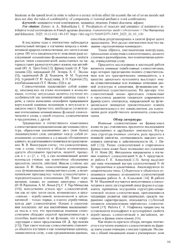 В последние годы в лингвистике наблюдается значительный интерес к изучению вопроса о номинативной природе словосочетания, его месте в языке и речи. Об этом свидетельствует появление ряда исследований номинативно-функциональных свойств разных типов словосочетаний, выполненных на материале таких разноструктурных языков, как английский (Ю. А. Трегубова [1]), французский (А. Р. Уразалиева [2]), персидский (М. Эстири, X. С. Эйдлак [3] ), таджикский (Б. Д. Ходжатов, Ф. М. Турсунов [4] ), турецкий (У И. Асадулаева, Э. Н. Гаджиев [5]), азербайджанский (3. Г. Исмаил [6]) и др.
