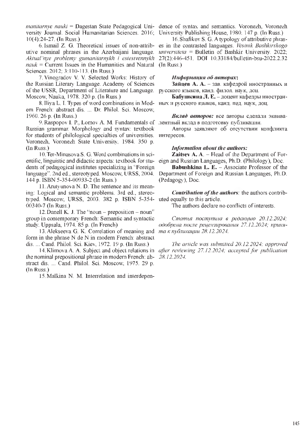 16. Шафиков С. Г. Типология атрибутивных словосочетаний в языках сравнения // Вестник Башкирского университета. 2022. Т. 27, № 2. С. 446-451. DOI: 10.33184/bulletin-bsu-2022.2.32 EDN: KLCVHL