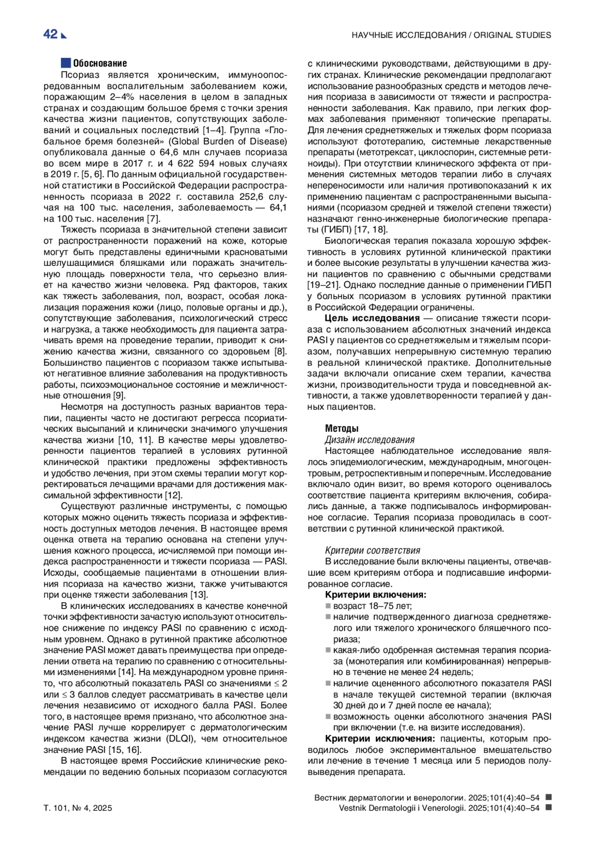 Цель исследования. Описать тяжесть заболевания, ответ на терапию и качество жизни у пациентов, получавших непрерывную системную терапию в течение ≥ 24 недель по поводу среднетяжелого и тяжелого псориаза.