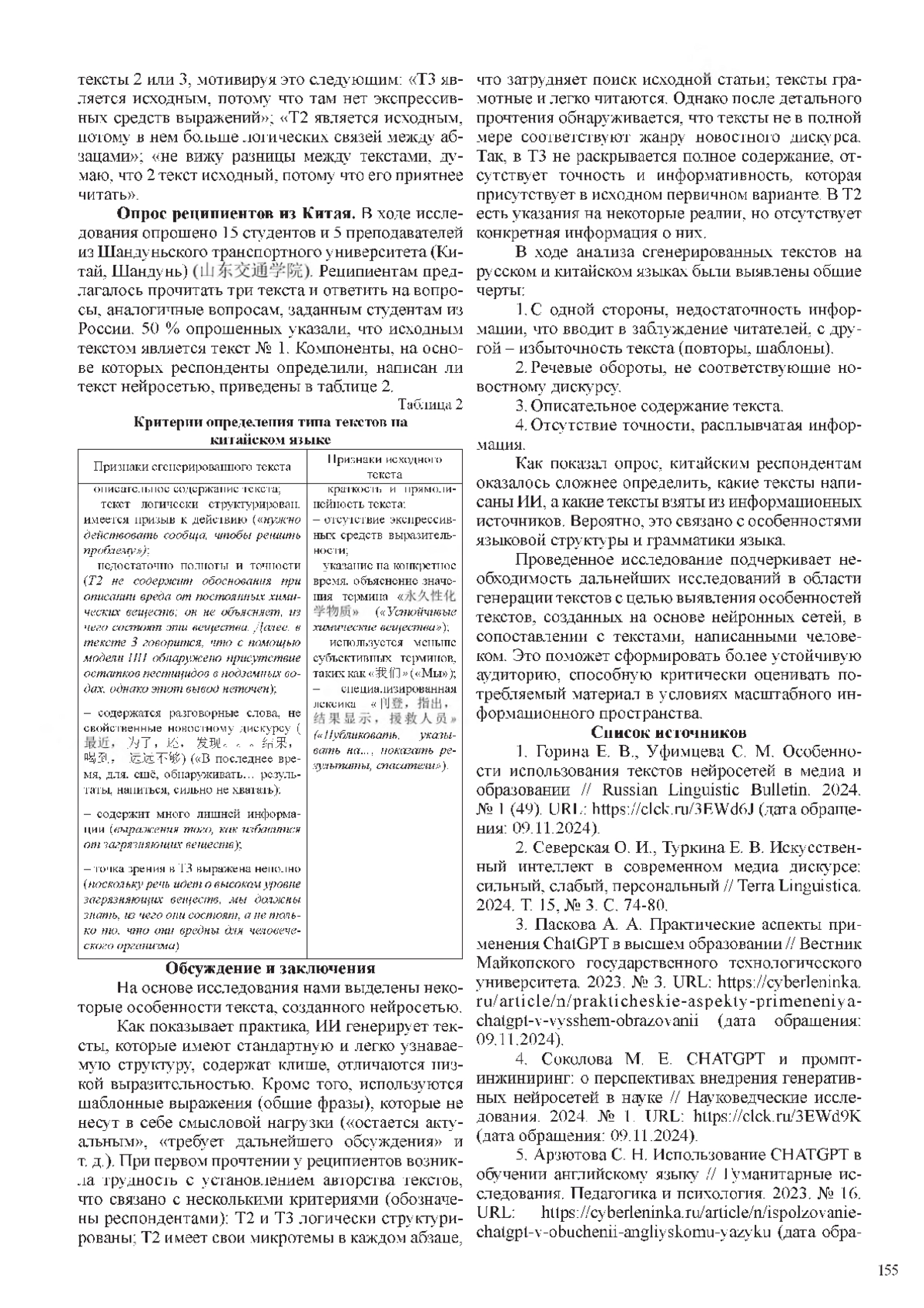 1. Горина Е. В., Уфимцева С. М. Особенности использования текстов нейросетей в медиа и образовании // Russian Linguistic Bulletin. 2024. № 1 (49). URL: https://clck.ru/3EWd6J (дата обращения: 09.11.2024). EDN: VEPNLU