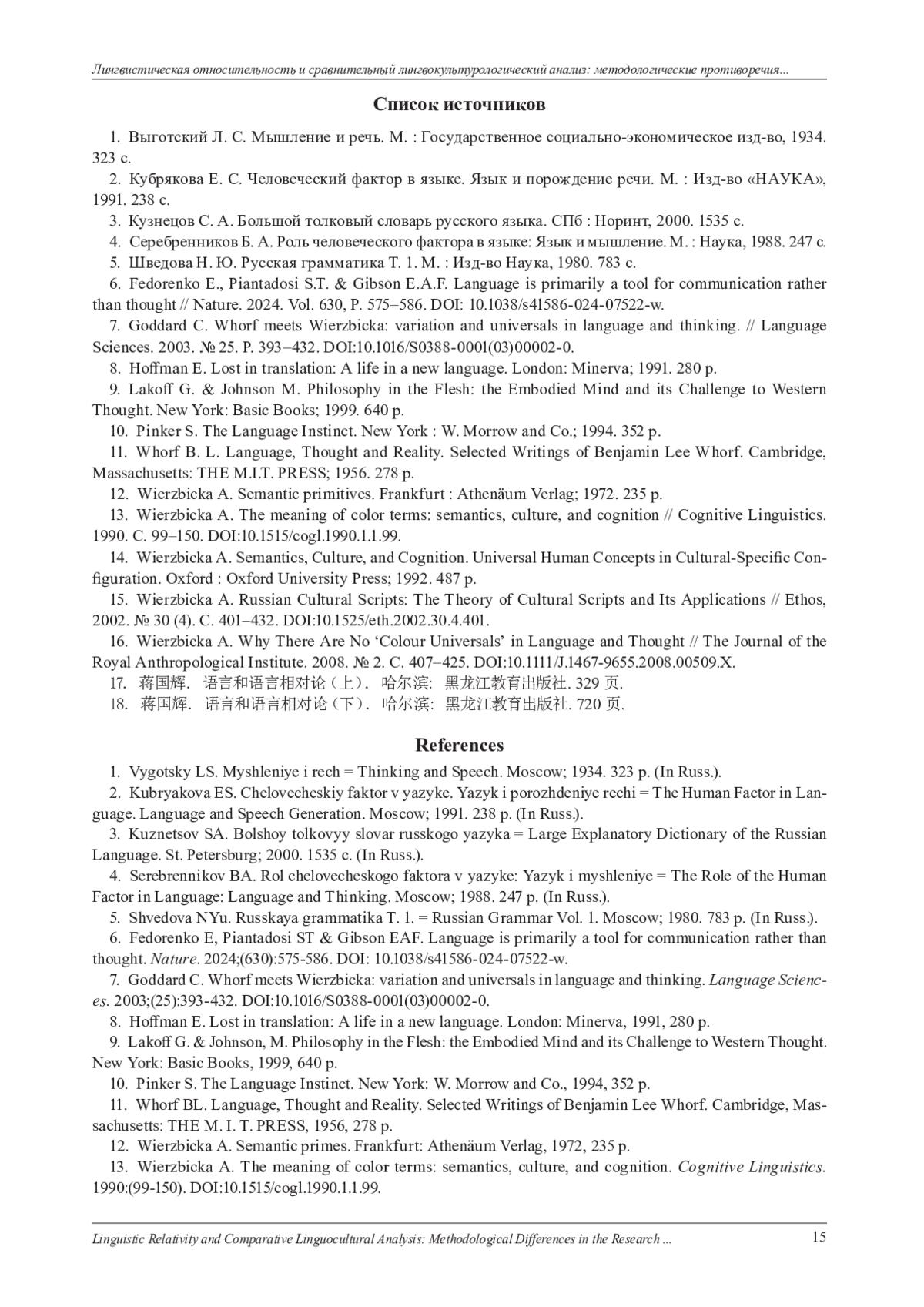 7. Goddard C. Whorf meets Wierzbicka: variation and universals in language and thinking. // Language Sciences. 2003. № 25. P. 393-432. DOI: 10.1016/S0388-0001(03)00002-0
