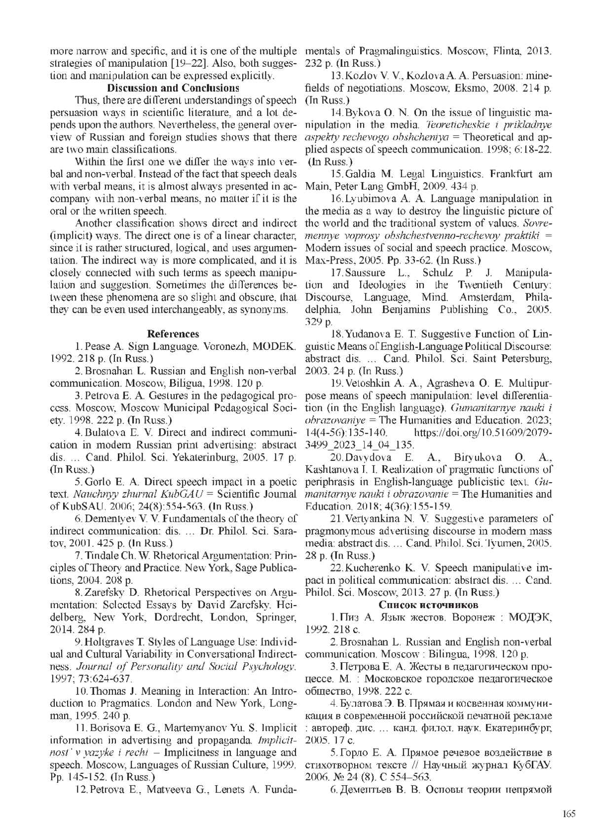 16. Любимова А. А. Языковое манипулирование в СМИ как способ разрушения языковой картины мира и традиционной системы ценностей // Современные вопросы общественно-речевой практики. М.: Макс-Пресс, 2005. С. 33-62.