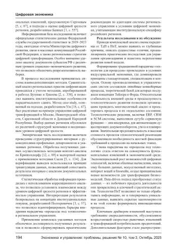 1. Банных Г. А., Баранова М. Е., Режецкая А. И. Оценка цифровой зрелости регионов как инструмент цифровой трансформации государственного управления // Российские регионы в фокусе перемен: сб. докл. XVI Междунар. конф. Екатеринбург, 18-20 нояб. 2021 г. Т. 2. Екатеринбург: Изд-во УМЦ УПИ, 2022. С. 554-560. EDN: GUNGOK