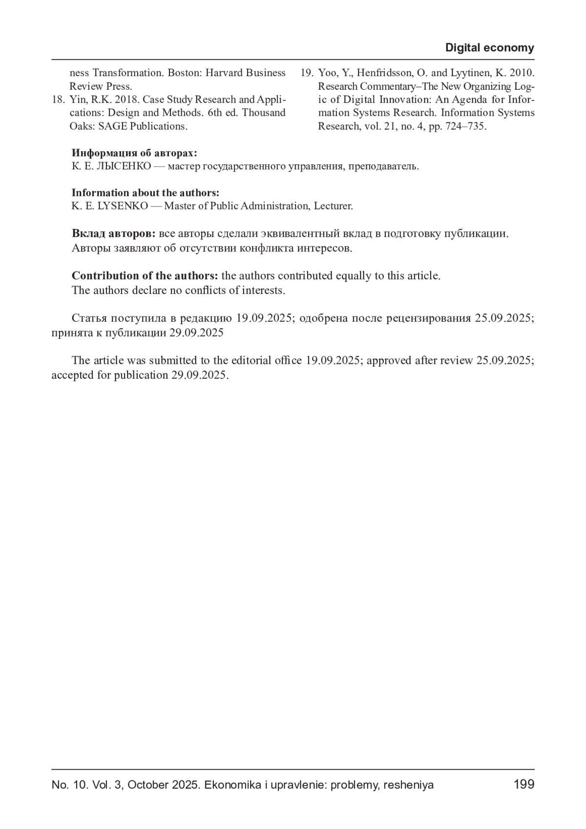 19. Yoo Y., Henfridsson O., Lyytinen K. Research Commentary-The New Organizing Logic of Digital Innovation: An Agenda for Information Systems Research // Information Systems Research. 2010. Vol. 21. No. 4. P. 724-735.