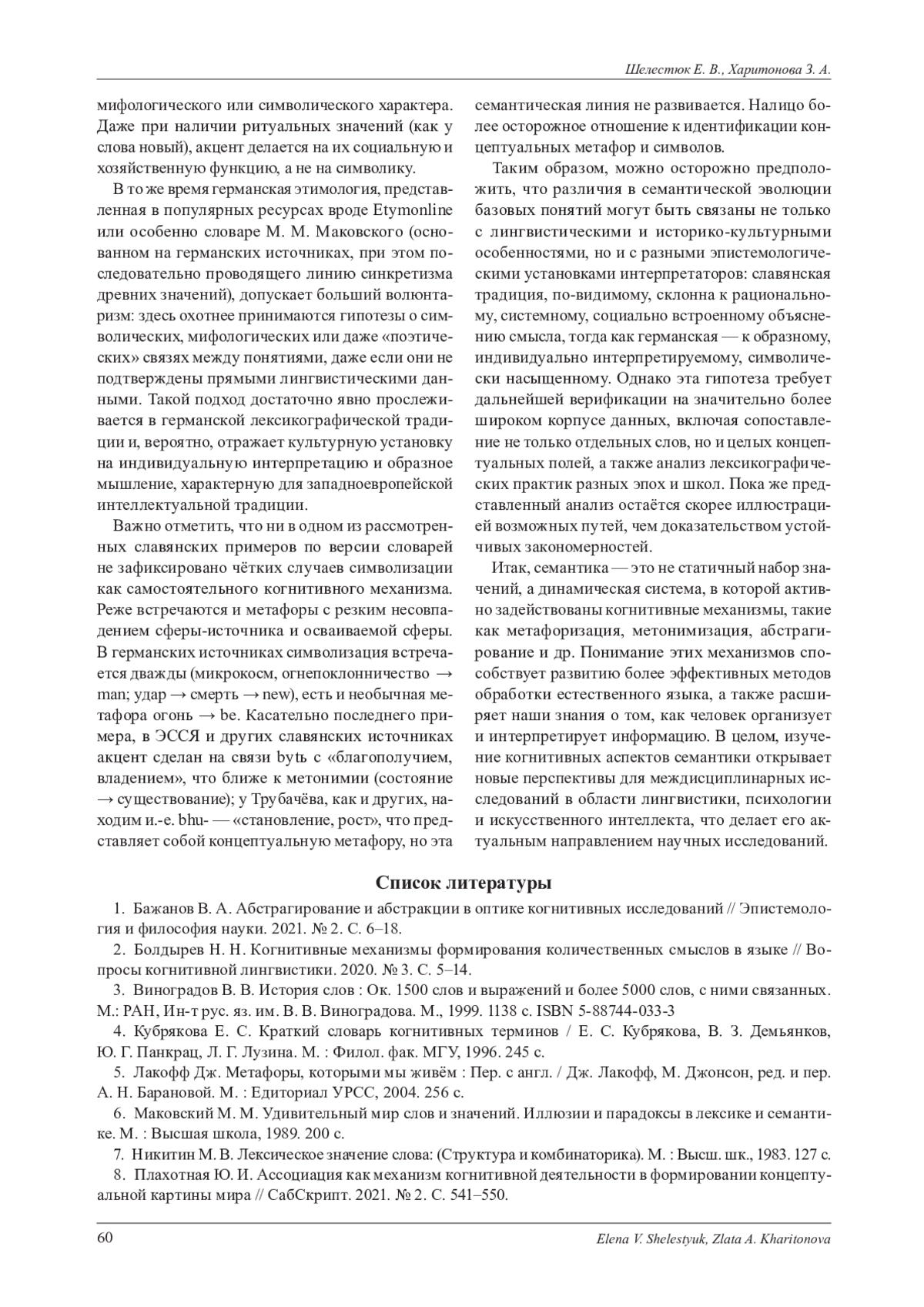 1. Бажанов В. А. Абстрагирование и абстракции в оптике когнитивных исследований // Эпистемология и философия науки. 2021. № 2. С. 6-18. EDN: FGFKAD