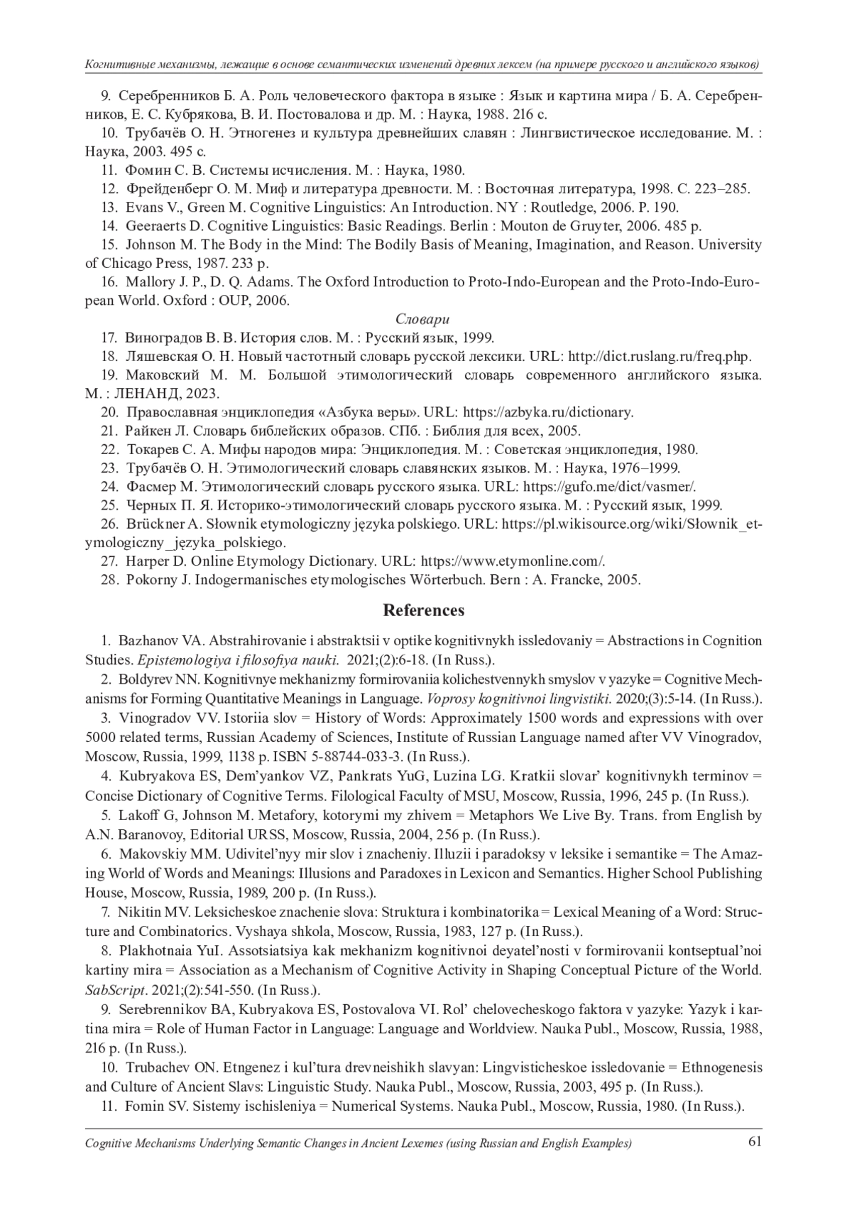 2. Болдырев Н. Н. Когнитивные механизмы формирования количественных смыслов в языке // Вопросы когнитивной лингвистики. 2020. № 3. С. 5-14. EDN: AFMELI
