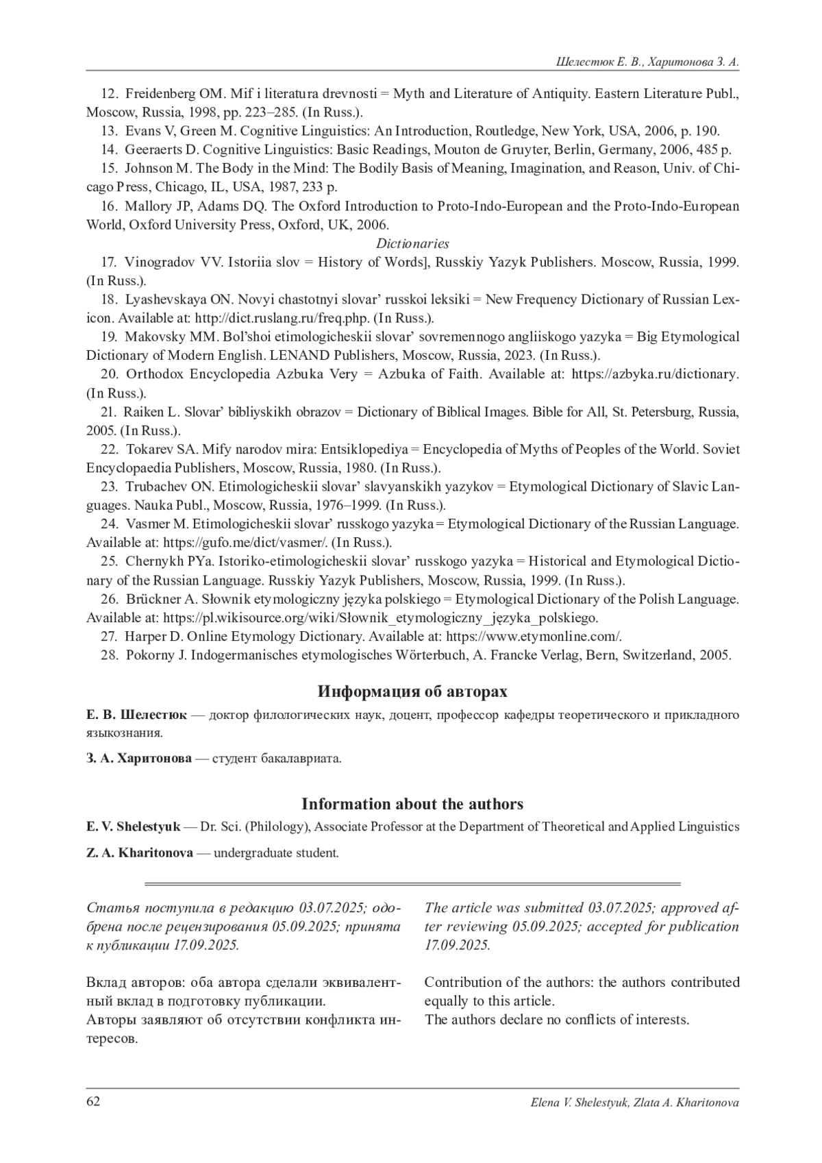 46. Ляшевская О. Н. Частотный словарь современного русского языка. М., 2009. URL: http://dict.ruslang.ru/freq.php (дата обращения: 22.07.2025). EDN: RTAOXB