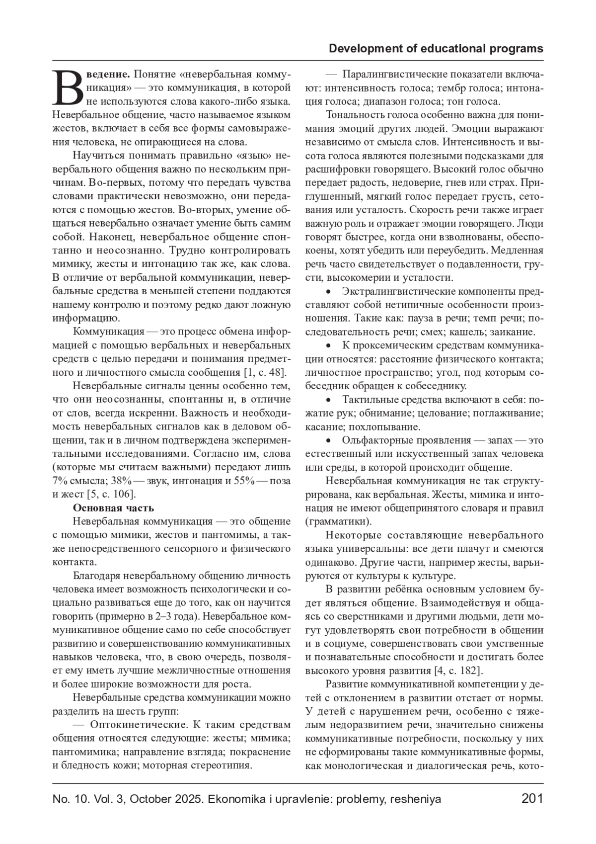В работе автор выделяет специфику коммуникативной деятельности детей с нарушением речи, заключающуюся в том, что у данной категории детей характерна невербальная коммуникация, причем не только в плане использования ими невербальных компонентов общения, но и на уровне понимания, восприятия информации, которая передается другими людьми с помощью невербальных средств. Такие дети используют и понимают более «простые» невербальные навыки общения (жесты, движения, мимика, зрительный контакт).