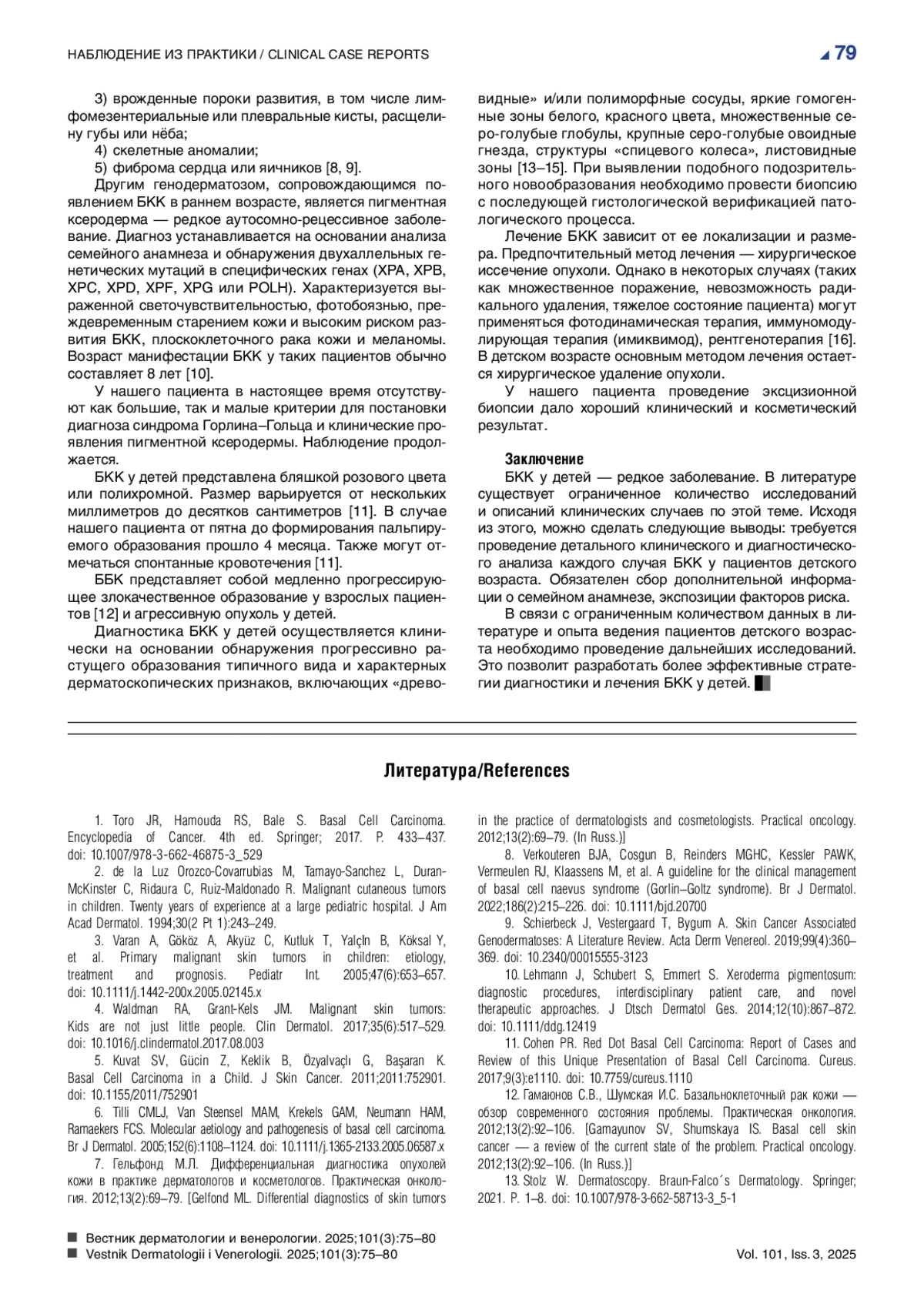 1. Toro JR, Hamouda RS, Bale S. Basal Cell Carcinoma. Encyclopedia of Cancer. 4th ed. Springer; 2017. P. 433-437. DOI: 10.1007/978-3-662-46875-3_529