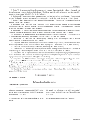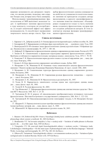 5. Зимин В. И. Семантические и формально-структурные варианты фразеологических единиц // Проблема устойчивости и вариантности языка: материалы межвуз. симпозиума. Тула, 1972. С. 70-98.
