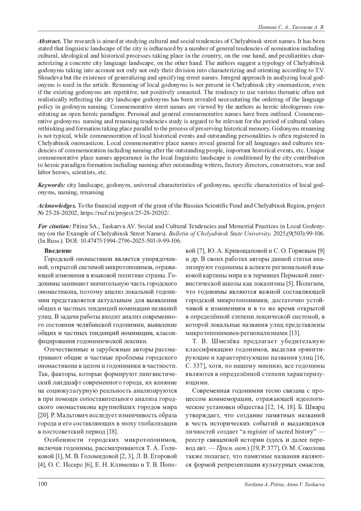 12. Питина С. А., Таскаева А. В. Названия памятных объектов Челябинской области как составляющая героической парадигмы // Вестник Челябинского государственного университета. 2021. № 9 (455). C. 120-127. DOI: 10.47475/1994-2796-2021-10917