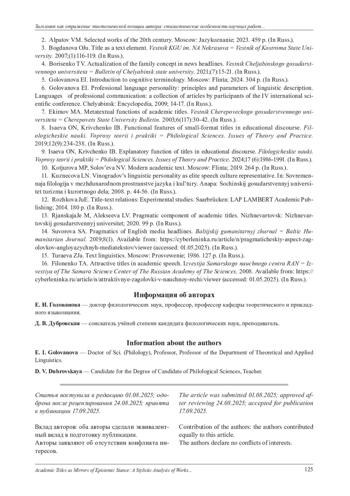 16. Филоненко Т. А. Аттрактивные заголовки научной речи / Т. А. Филоненко // Известия Самарского научного центра Российской академии наук. 2008. URL: https://cyberleninka.ru/article/n/attraktivnye-zagolovki-v-nauchnoy-rechi/viewer (дата обращения: 01.05.2025).