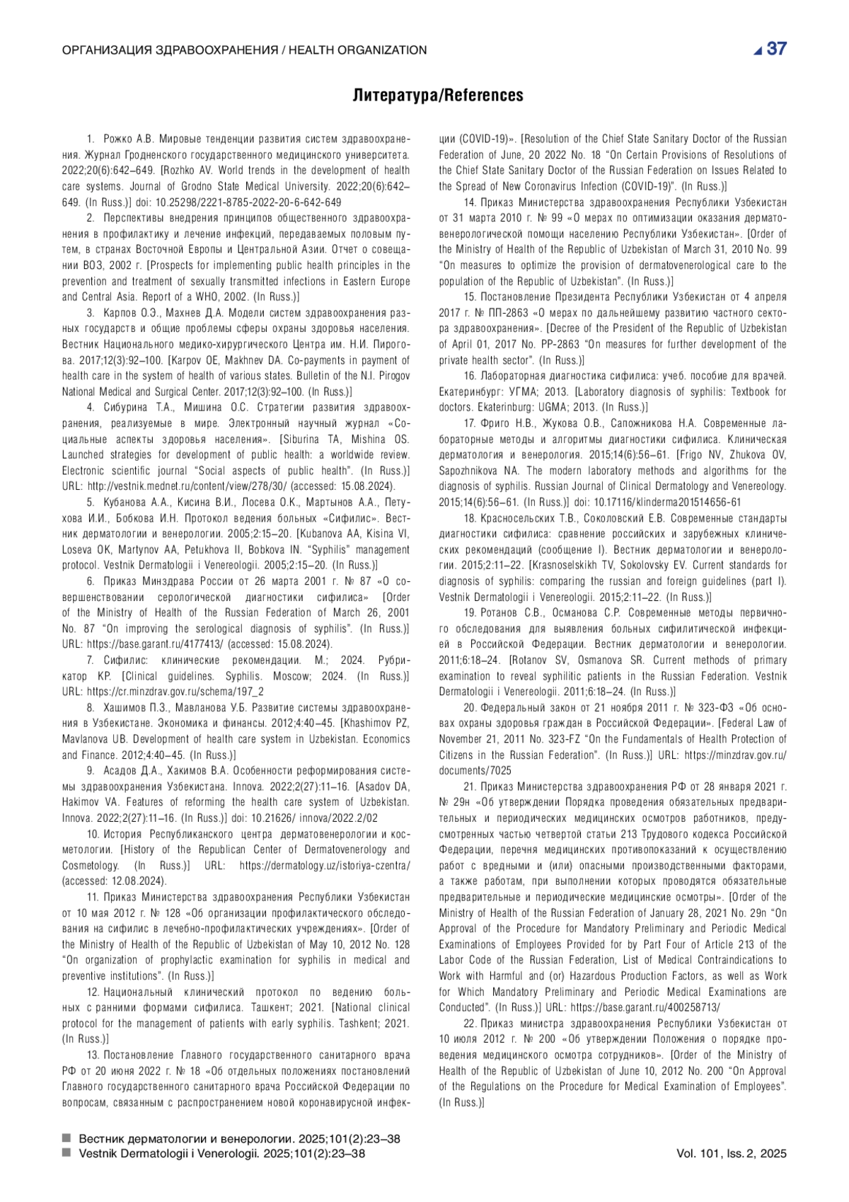 10. История Республиканского центра дерматовенерологии и косметологии. URL: https://dermatology.uz/istoriya-czentra/ (accessed: 12.08.2024).