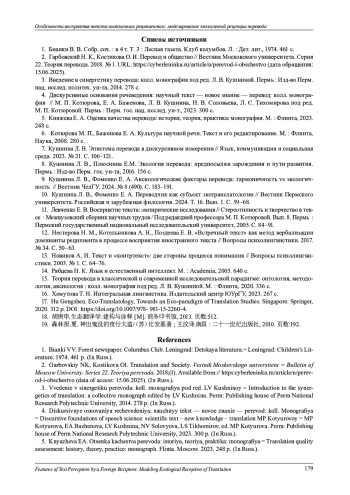 10. Кушнина Л. В., Фоменко Е. А. Переводчик как субъект экотранслатологии // Вестник Пермского университета. Российская и зарубежная филология. 2024. Т. 16. Вып. 1. С. 59-68. EDN: EVLHSQ