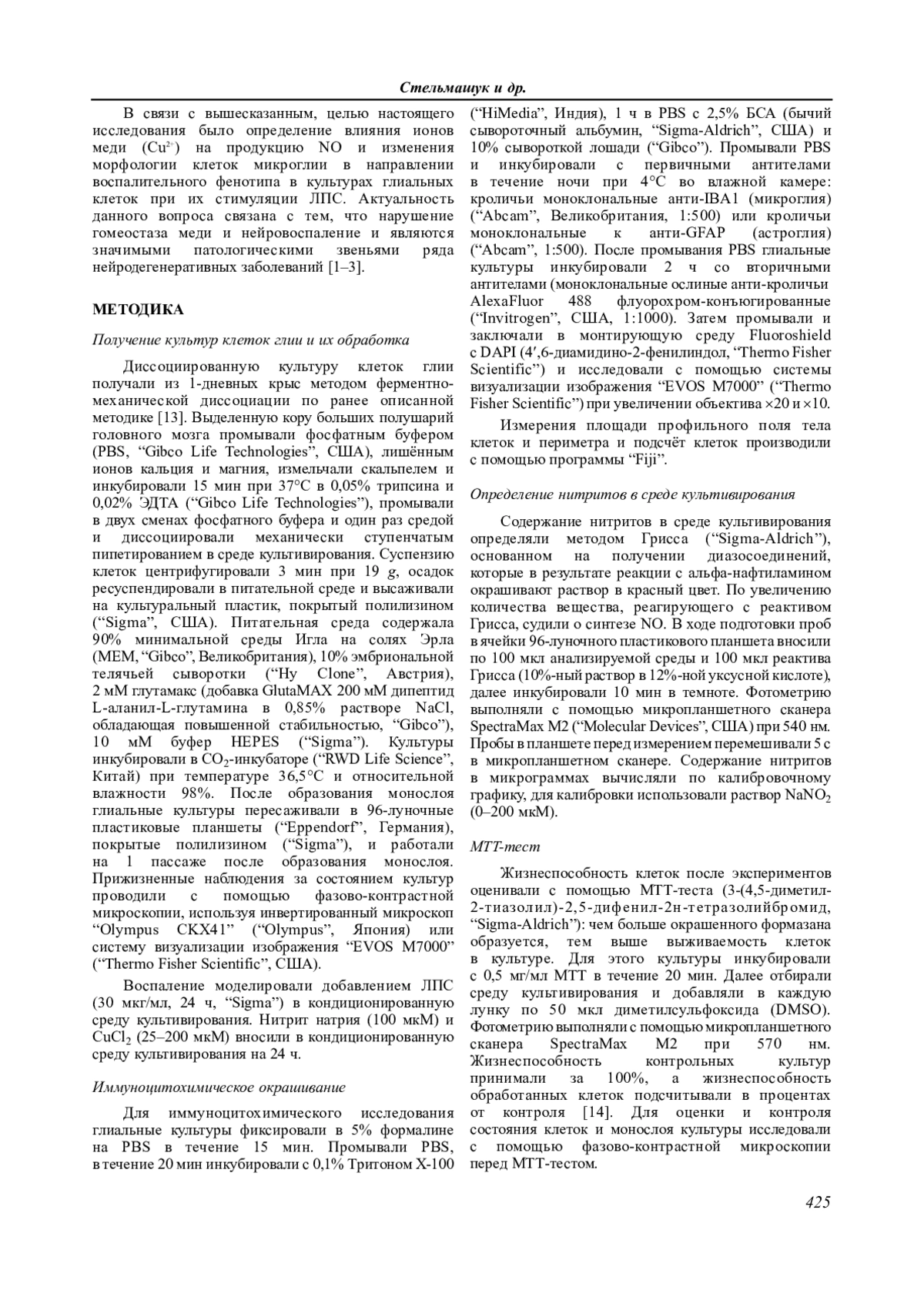 12. Goshi N., Morgan R.K., Lein P.J., Seker E. (2020) A primary neural cell culture model to study neuron, astrocyte, and microglia interactions in neuroinflammation. J. Neuroinflammation, 17(1), 155. DOI: 10.1186/s12974-022-02391-4
