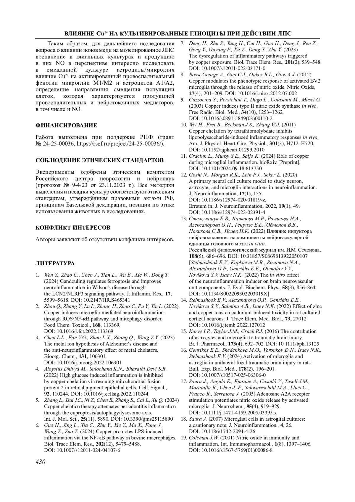 2. Zhou Q., Zhang Y., Lu L., Zhang H., Zhao C., Pu Y., Yin L. (2022) Copper induces microglia-mediated neuroinflammation through ROS/NF-κB pathway and mitophagy disorder. Food Chem. Toxicol., 168, 113369. DOI: 10.1016/j.fct.2022.113369