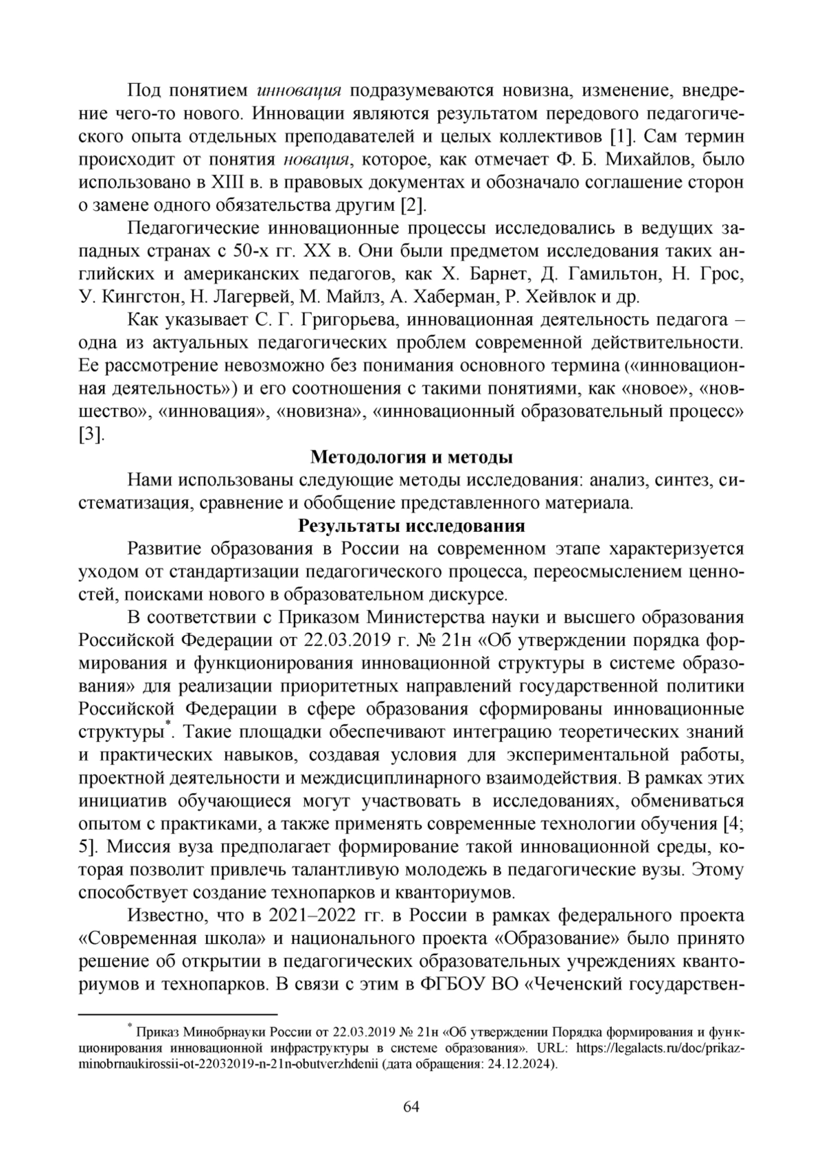 3. Григорьева С. Г. Инновационная деятельность учителя как педагогическое явление // Вестник ЧГПУ им. И. Я. Яковлева. 2011. № 3 (71), ч. 1. С. 49-56.