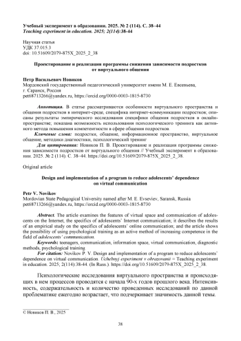 7. Жуина Д. В., Андронов В. П., Фатеева М. А. Изучение особенностей проявления киберкоммуникативной зависимости у подростков // Учебный эксперимент в образовании. 2021. № 3 (99). С. 34-38. EDN: EJQDTA