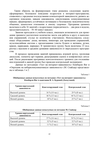 В статье рассматриваются особенности виртуального пространства и общения подростков в интернет-среде, специфика интернет-коммуникации подростков; описаны результаты эмпирического исследования специфики общения подростков в онлайн-пространстве; показана возможность использования психологического тренинга как активного метода повышения компетентности в сфере общения подростков.