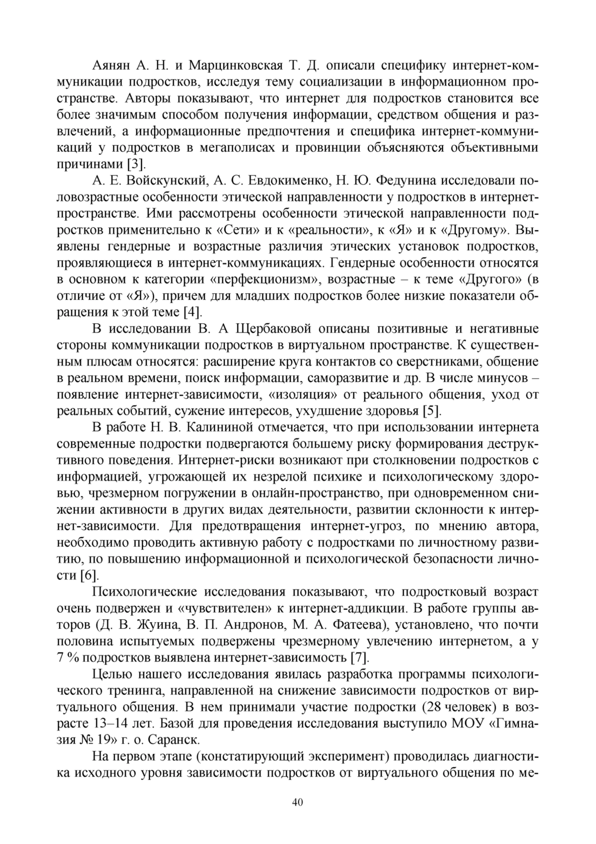 3. Аянян А. Н., Марцинковская Т. Д. Социализация подростков в информационном пространстве // Психологические исследования. 2016. Т. 9, № 46. С. 8-17. EDN: YHHNWL