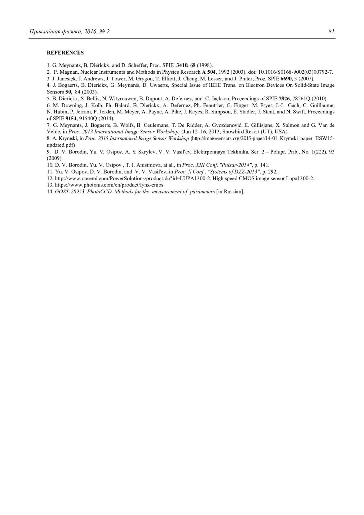 1. Meynants G., Dierickx B., and Scheffer D. // Proc. SPIE. 1998. Vol. 3410. P. 68.