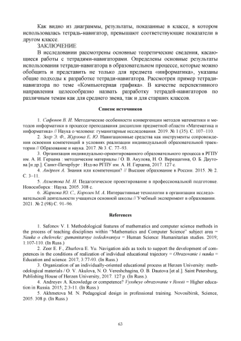 2. Зеер Э. Ф., Журлова Е. Ю. Навигационные средства как инструменты сопровождения освоения компетенций в условиях реализации индивидуальной образовательной траектории // Образование и наука. 2017. № 3. С. 77-93. EDN: YIPVUB