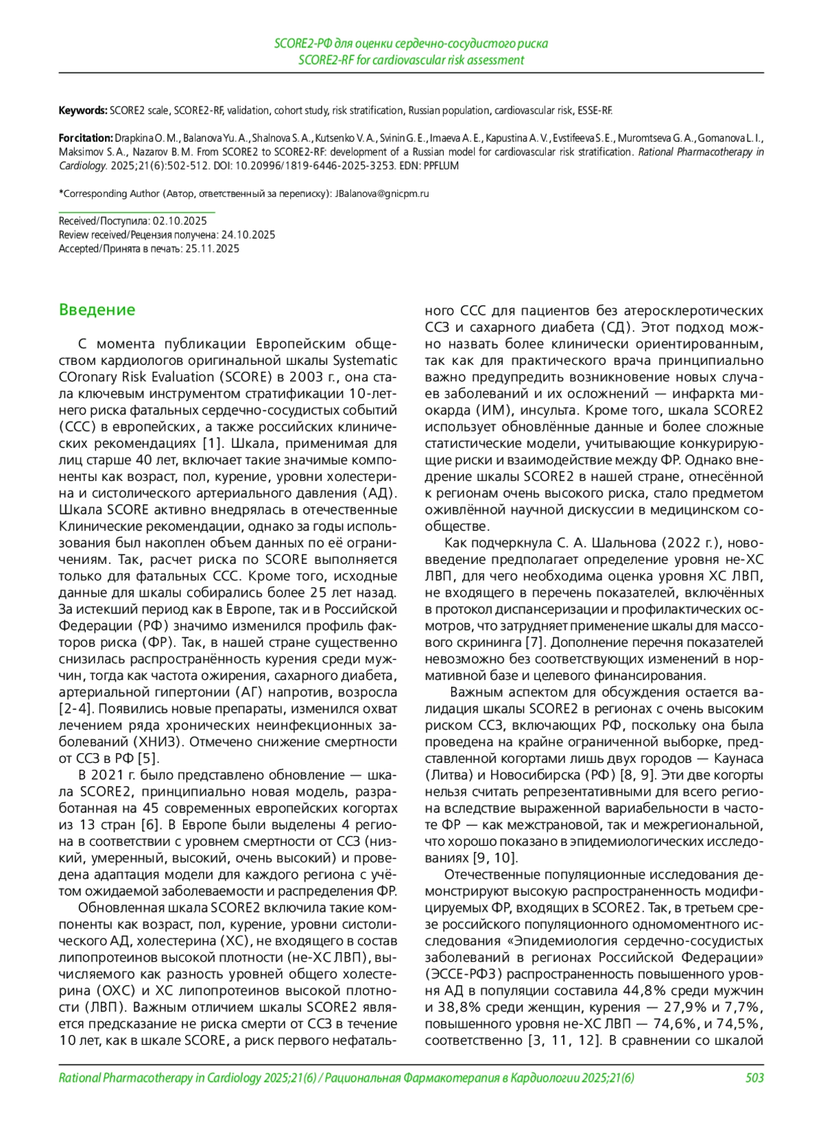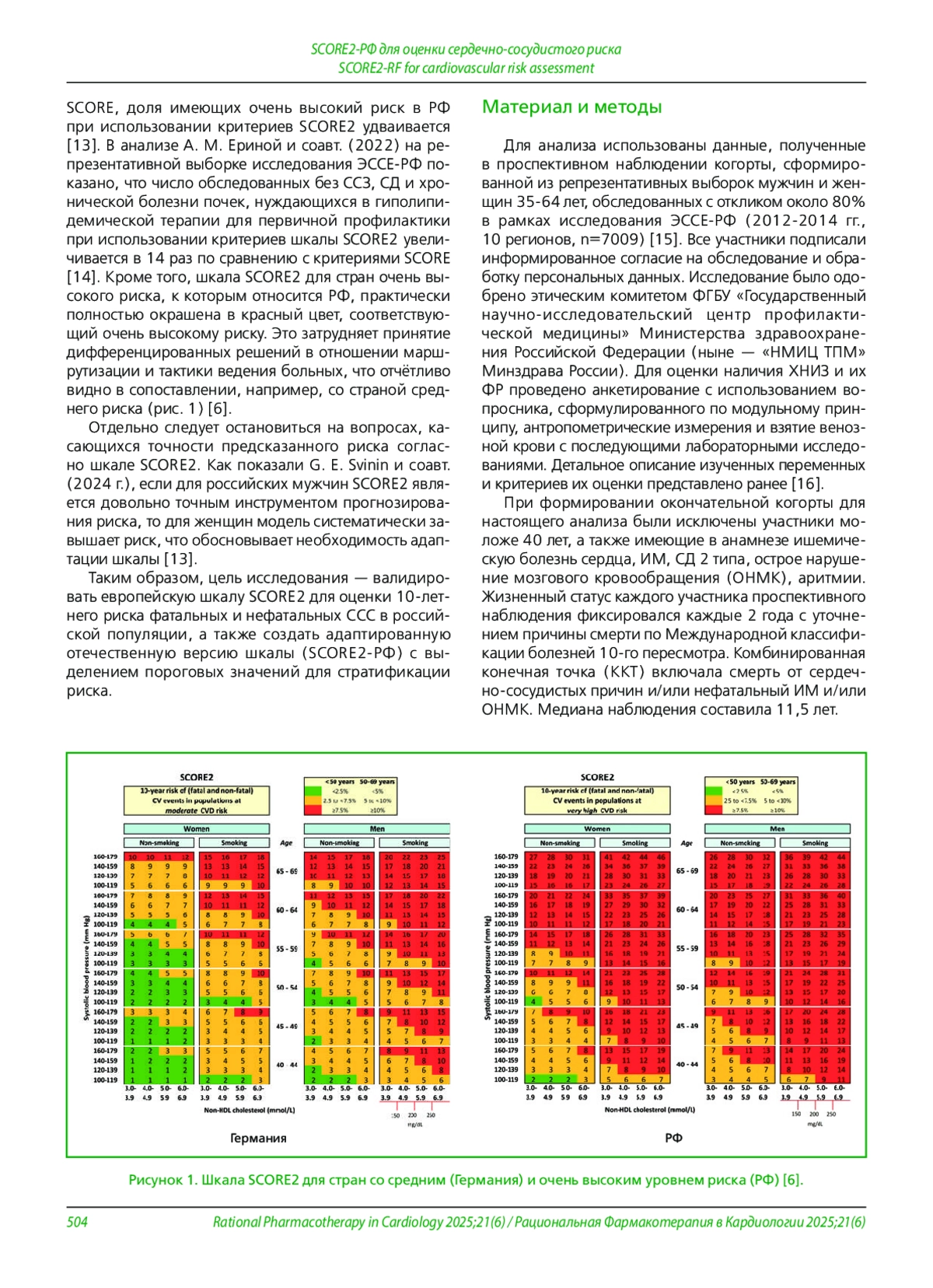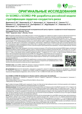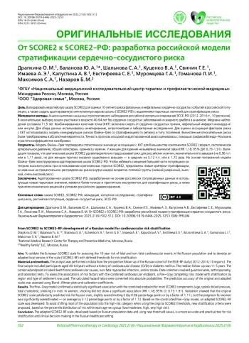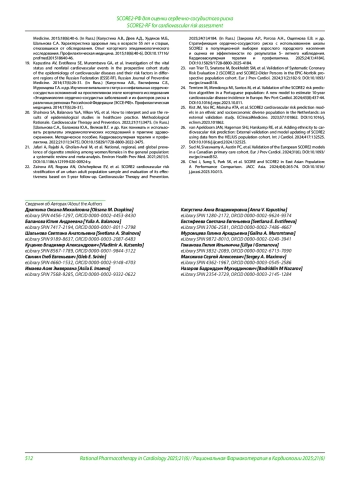 13. Svinin GE, Kutsenko VA, Shalnova SA, et al. Validation of SCORE2 on a sample from the Russian population and adaptation for the very high cardiovascular disease risk region. PLoS One. 2024;19(4):e0300974. DOI: 10.1371/journal.pone.0300974