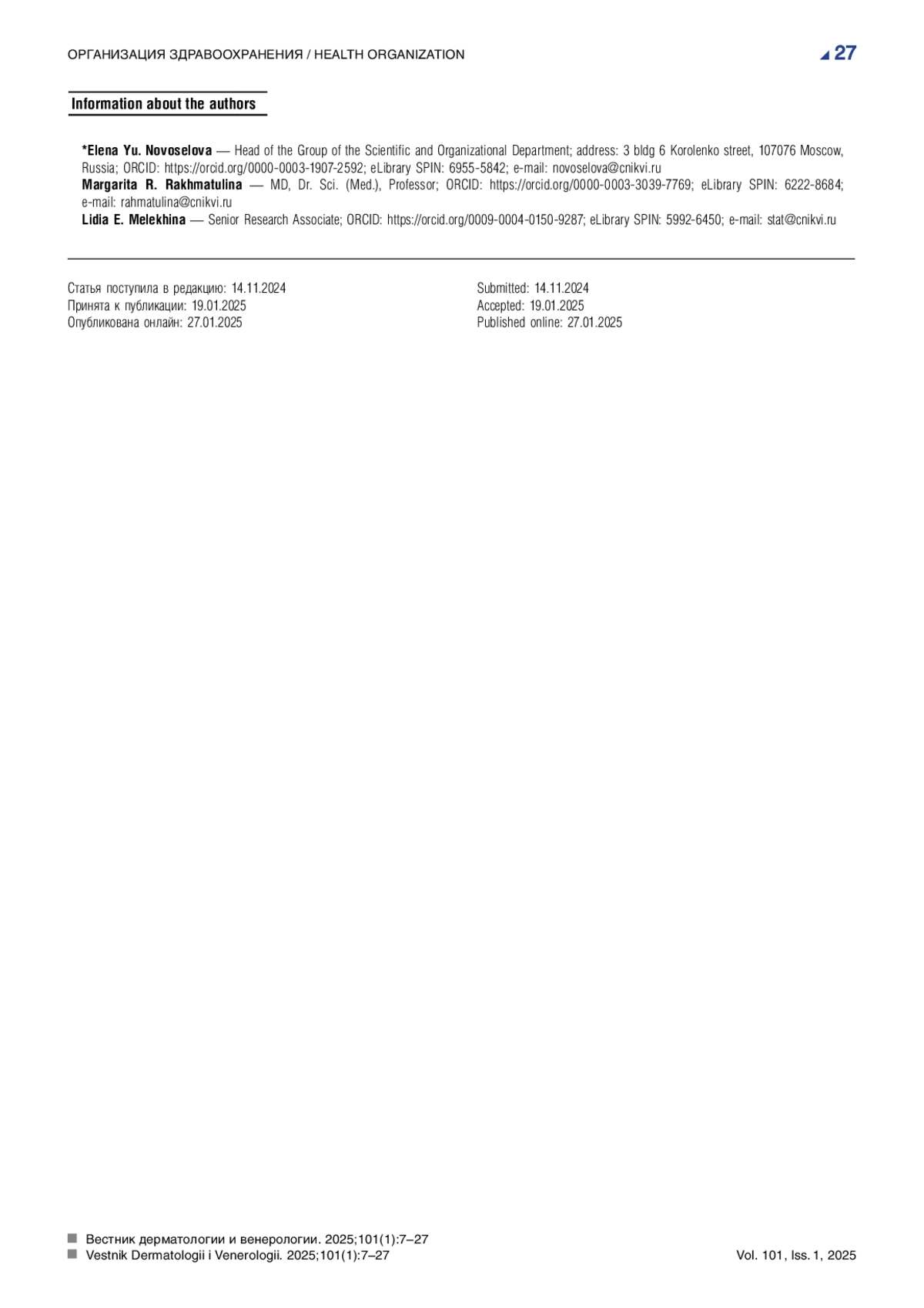 11. Залевская О.В., Лосева О.К., Доля О.В. Заболеваемость сифилисом подростков как медико-социальная проблема. Клиническая дерматология и венерология. 2021;20(2):15-25. DOI: 10.17116/klinderma20212002115