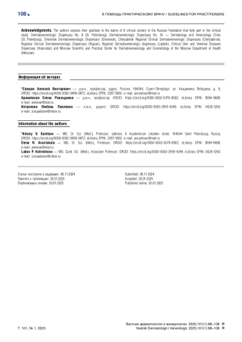 22. Огрызко Е.В., Шевченко А.Г., Иванова М.А. Динамика заболеваемости дерматофитиями в Российской Федерации за 2005-2020 гг. Социальные аспекты здоровья населения. 2023;69(3):1-24. DOI: 10.21045/2071-5021-2023-69-3-3