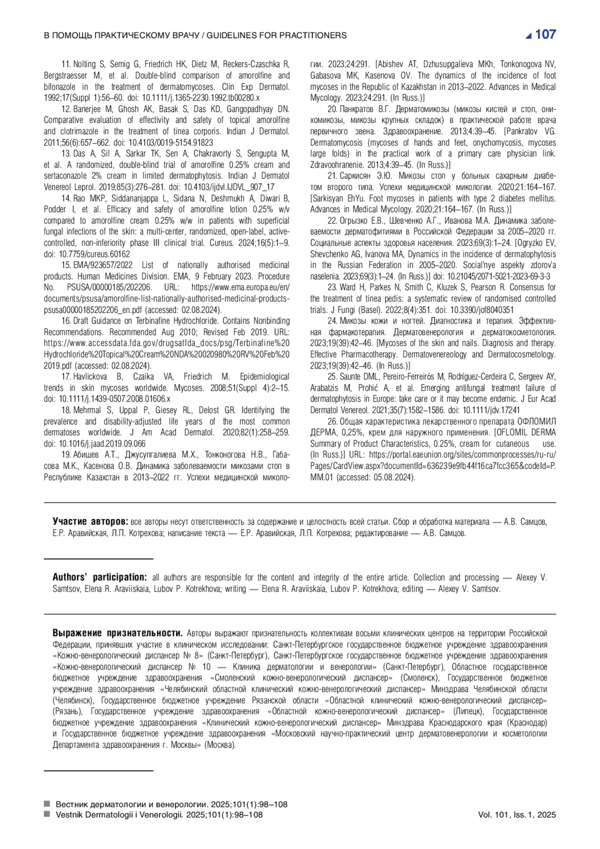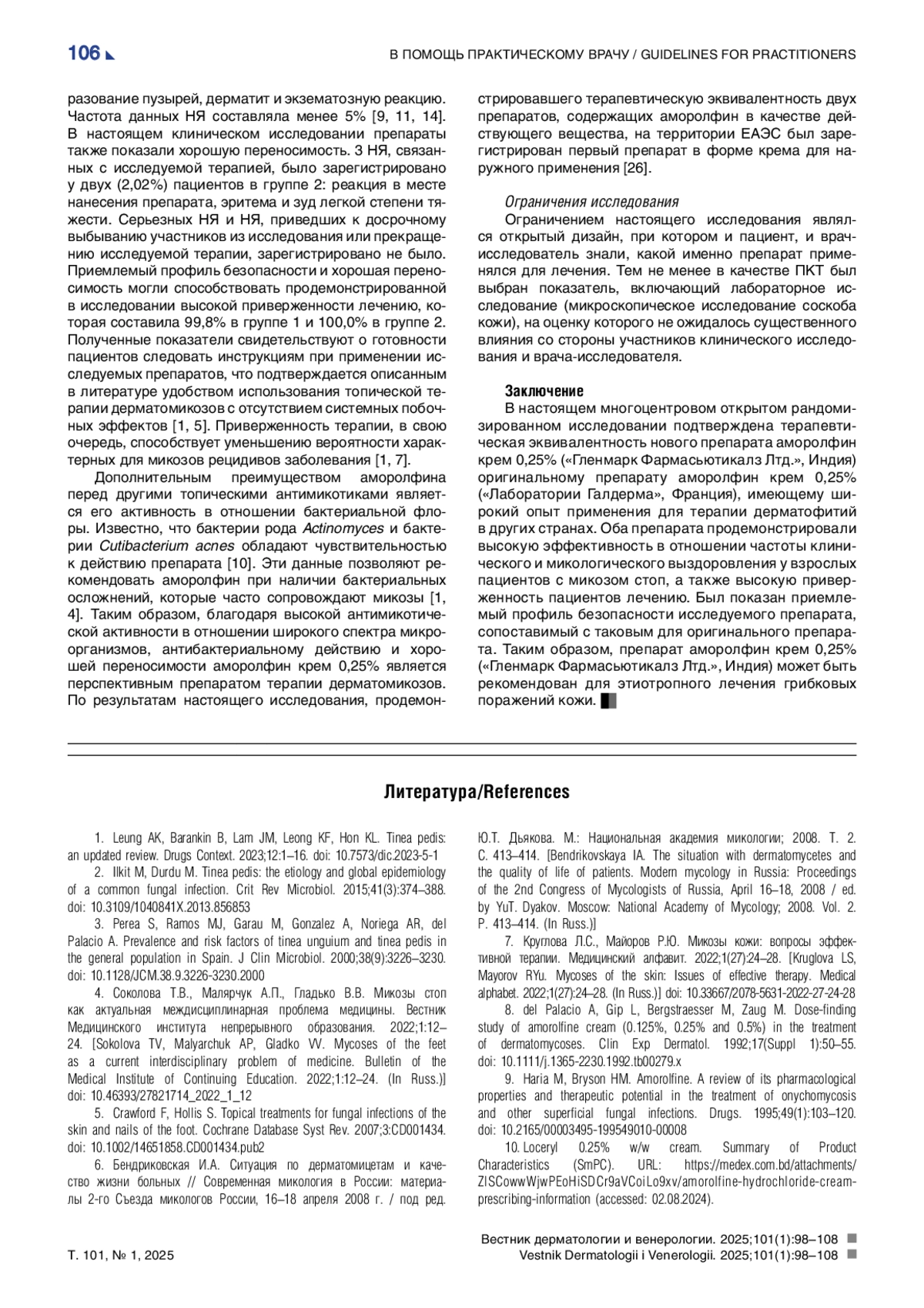 14. Rao MKP, Siddananjappa L, Sidana N, Deshmukh A, Diwari B, Podder I, et al. Efficacy and safety of amorolfine lotion 0.25% w/v compared to amorolfine cream 0.25% w/w in patients with superficial fungal infections of the skin: a multi-center, randomized, open-label, active-controlled, non-inferiority phase III clinical trial. Cureus. 2024;16(5):1-9. DOI: 10.7759/cureus.60162 EDN: DPDKPU