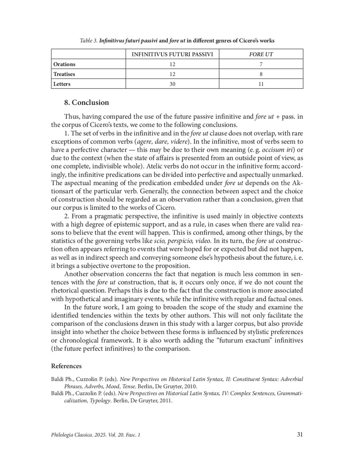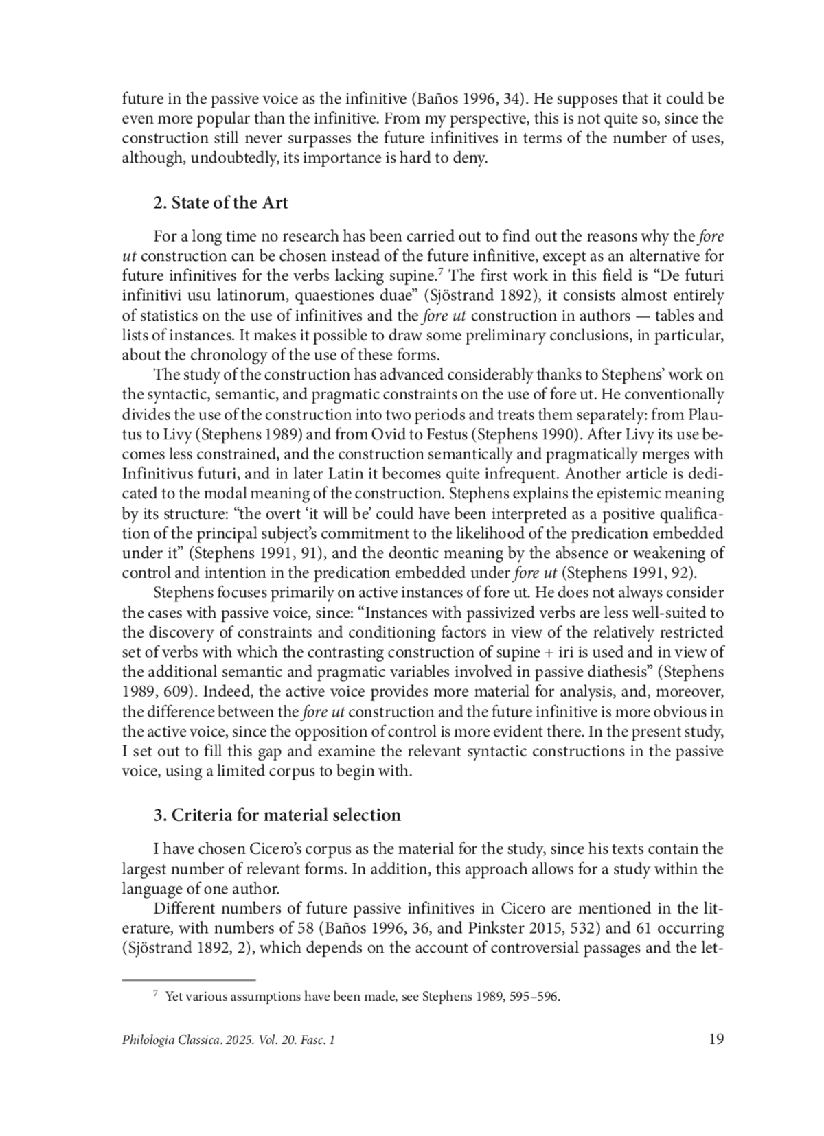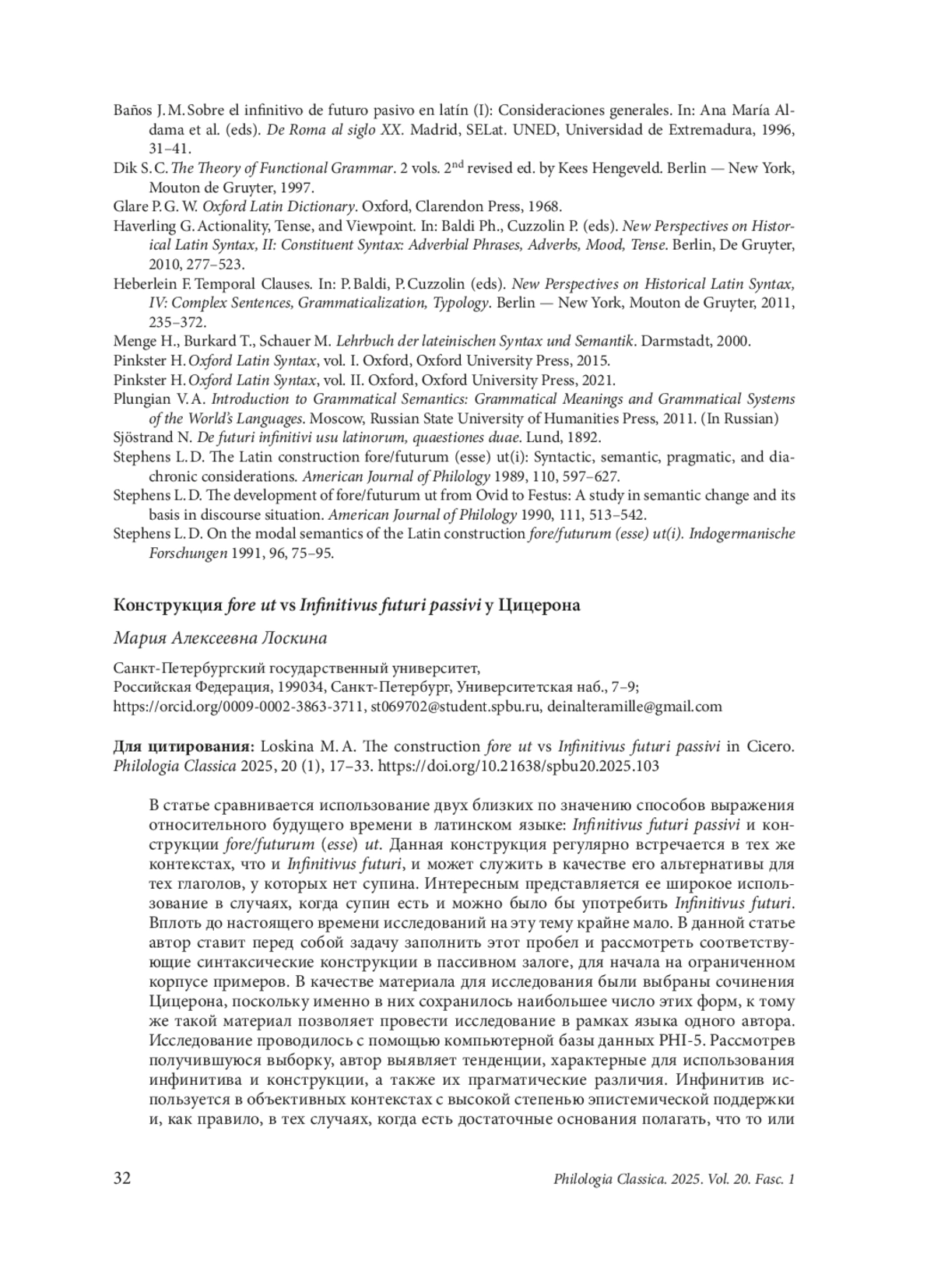 13. Stephens L. D. The Latin construction fore/futurum (esse) ut(i): Syntactic, semantic, pragmatic, and diachronic considerations. American Journal of Philology 1989, 110, 597-627.