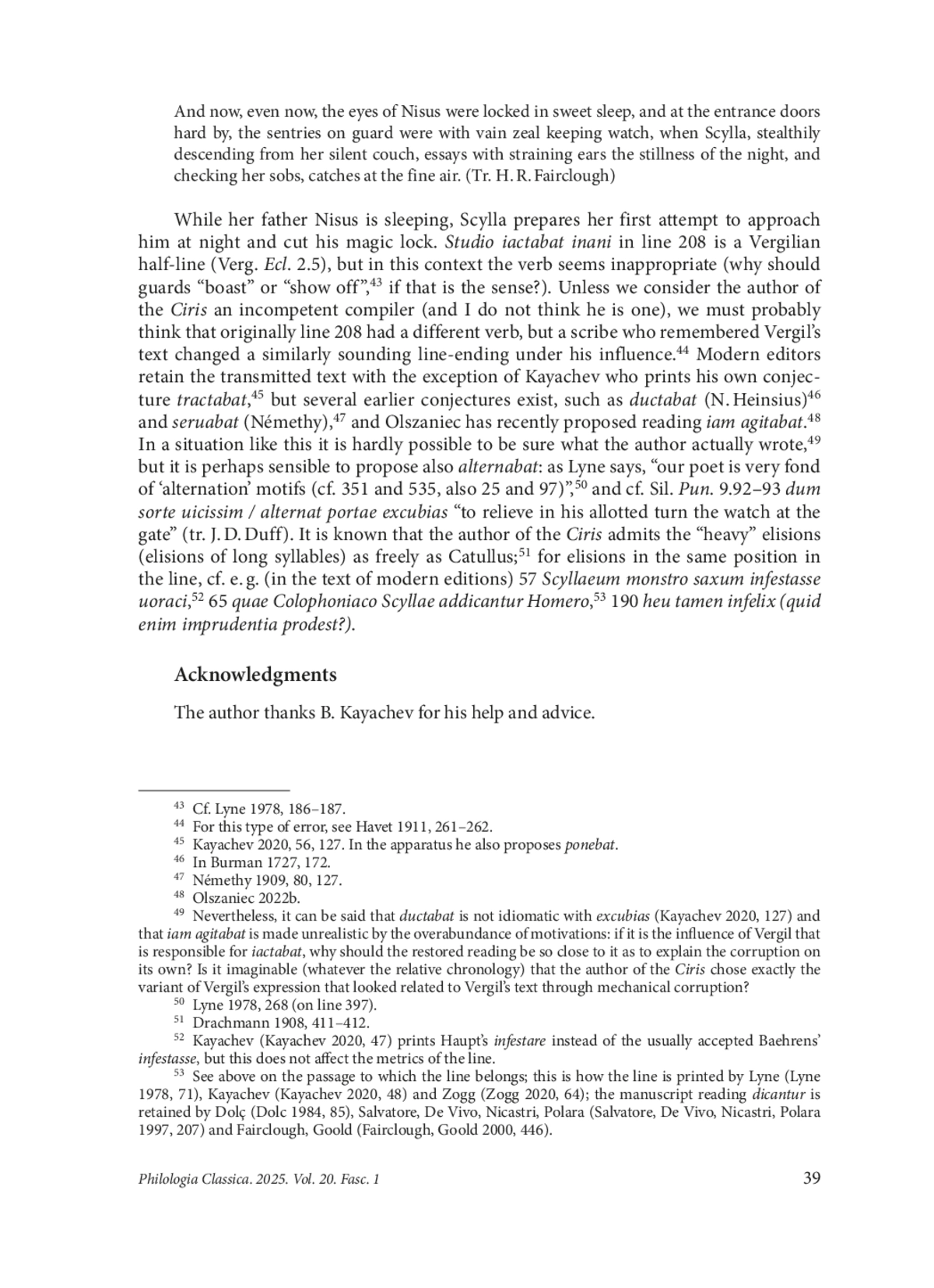 21. Kayachev B. Ciris 90: An Emendation. Paideia 2017, 72, 611-614. EDN: ZAJDMI