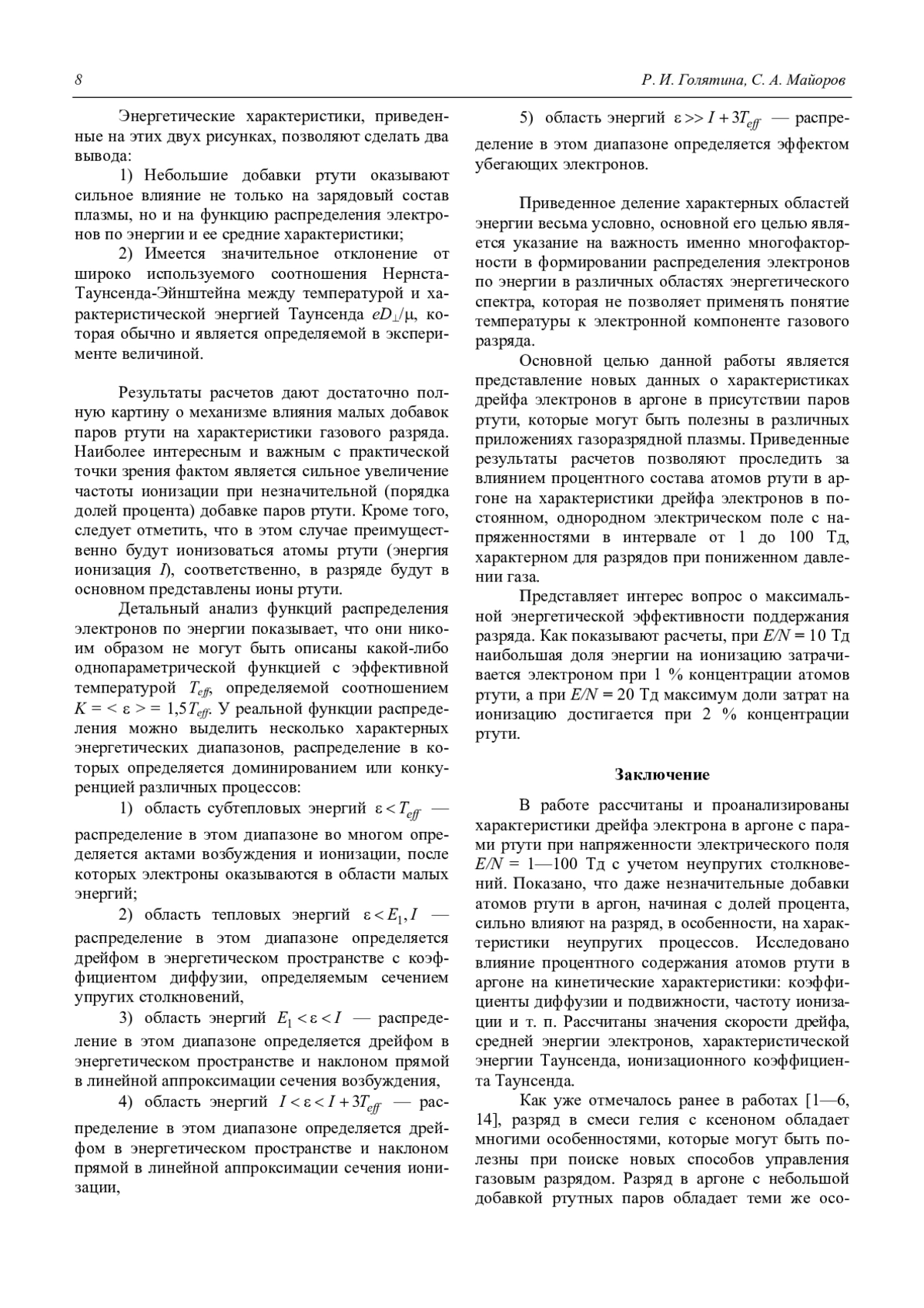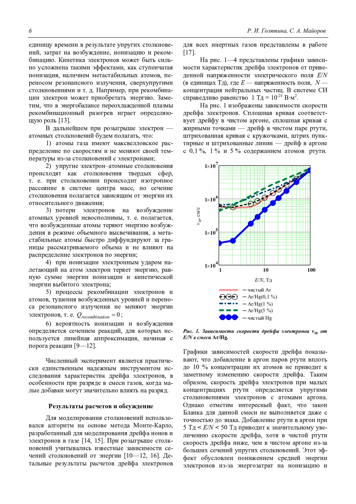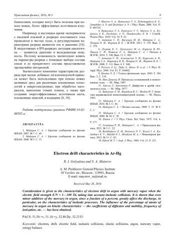 Голятина Р. И., Майоров С. А. Характеристики дрейфа электрона в аргоне с парами ртути 5