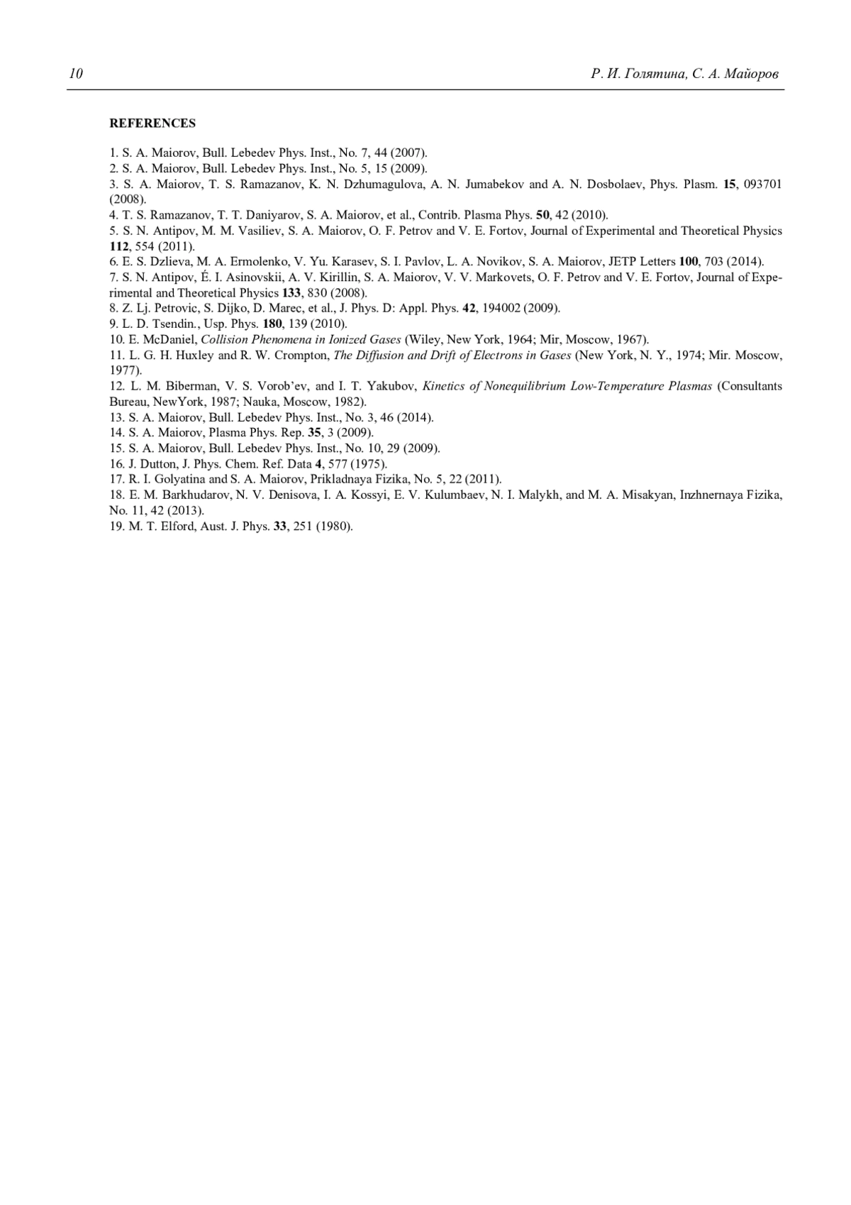14. S. A. Maiorov, Plasma Phys. Rep. 35, 3 (2009).