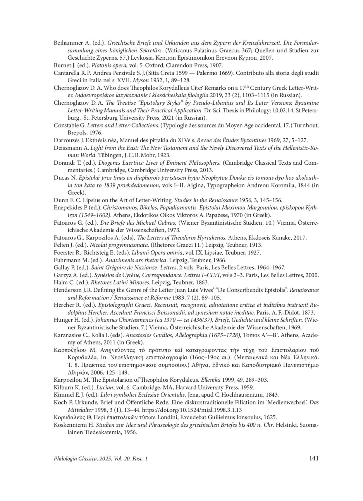 37. Koskenniemi H. Studien zur Idee und Phraseologie des griechischen Briefes bis 400 n. Chr. Helsinki, Suomalainen Tiedeakatemia, 1956.