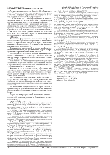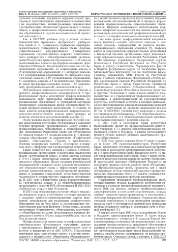 Формирование готовности к профессиональному самоопределению у обучающихся общеобразовательных организаций Республики Крым в новых социально-экономических условиях региона имеет важную роль в процессе создания качественного кадрового потенциала в востребованных профессиях на рынке труда.
