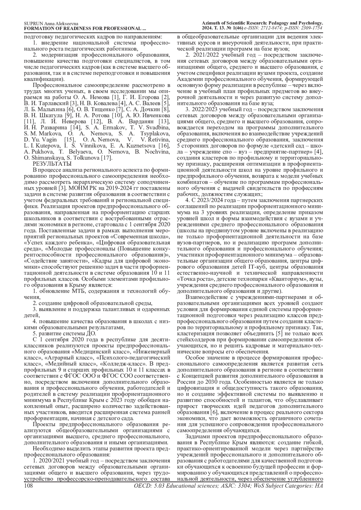 1. Немова, О. А. Свобода профессионального выбора и профориентация: ренессанс дикого капитализма или шаг вперёд? / О. А. Немова, Т. Ю. Медведева // Азимут научных исследований: педагогика и психология. - 2019. - Т. 8, № 2(27). - С. 172-175. DOI: 10.26140/anip-2019-0802-0038 EDN: IIDHEI