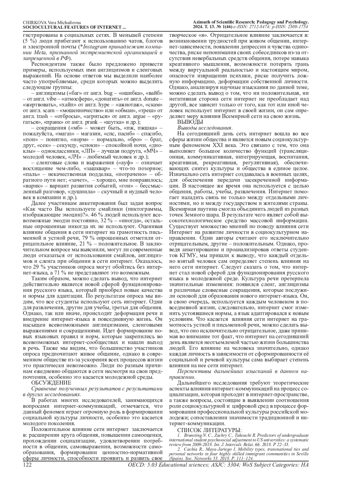 8. Wen K. A review of literature on social media and acculturation. Open J. Soc. Sci. 8, 2020 P. 19-29. EDN: KUKSHB