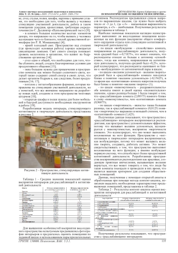 В данной статье рассматривается проблема создания психологически комфортного общественного помещения, которое бы стимулировало качественное выполнение деятельности человека, облегчило бы адаптацию, а также не мешало работе человека, находящегося в нем. Представлено сравнение двух противоположных по реализации психологических задач общественных помещения. Одной помещение предназначено для релаксации, расслабления тела, снятия психического напряжения человека (кабинет психологической разгрузки). Другое помещение предназначено стимулировать когнитивную, творческую деятельность человека (кабинет для проведения мастер-классов). В статье оба помещения графически воссозданы и представлены в виде рисунков. Приводится список собранных теоретических психологических и архитектурных данных к каждому из воссозданных помещений, этот список отражает выбор того или иного дизайнерского решения, а также представлены доводы, чем данный выбор обусловлен. В статье приводятся эмпирические данные опроса, проведенного авторами, среди студентов Оренбургского государственного университета. Эти данные помогают проанализировать насколько цветовая гамма, дизайн пространства помещений, отведенных для психологической работы, способствуют желанию работать в них. Данная статья может быть полезна практическим психологам, для оформления своих рабочих помещений, а также представителям дизайнерских и архитектурных специальностей, занимающихся оформлением общественных интерьеров.