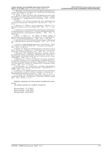 21. Слесарева, В.Г. Визуальное восприятие интерьерного пространства на зрителя / Слесарева В.Г., Сычева В.В. // Бизнес и дизайн ревю. - 2018. - № 1(9). - С. 1-6.