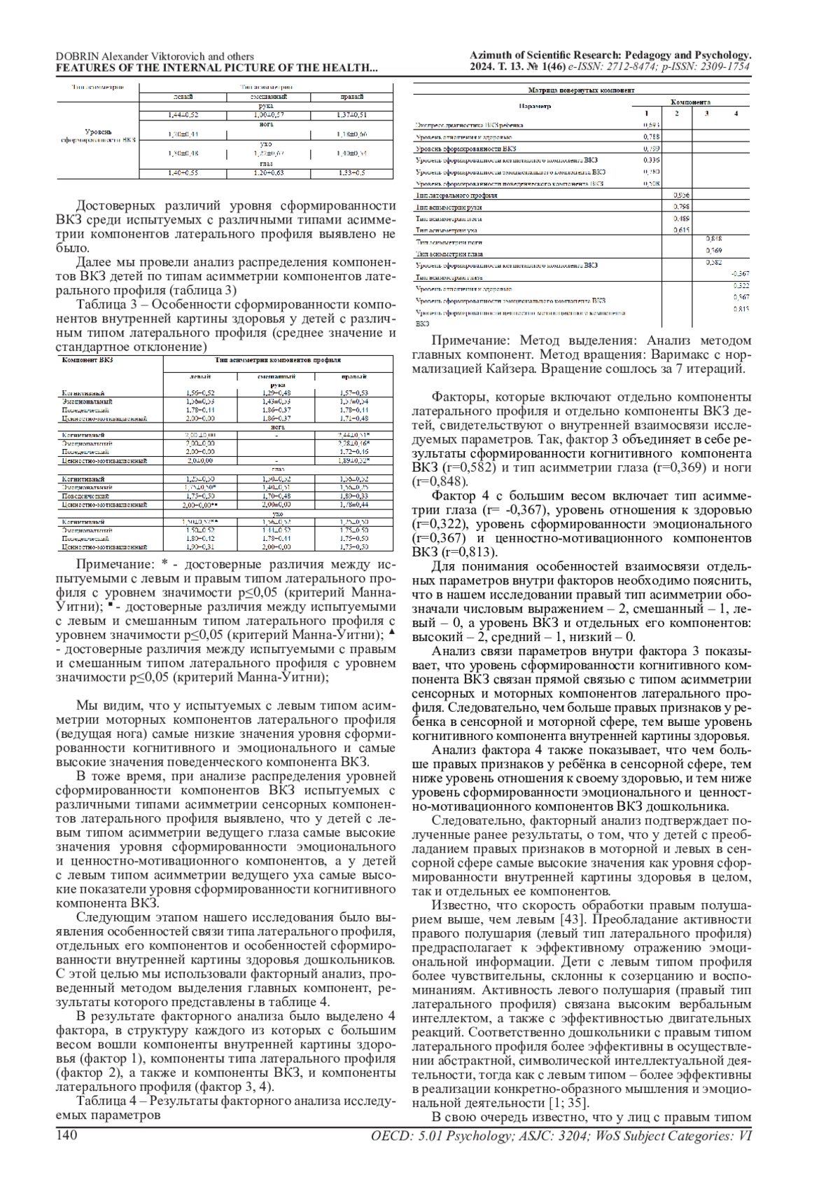 30. Селикова А.Ю. Особенности развития пространственно-временных представлений у детей младшего школьного возраста с разными латеральными профилями // Психологическая наука и образование. 2013. Том 18. № 1. С. 107-114. EDN: PZNNPX
