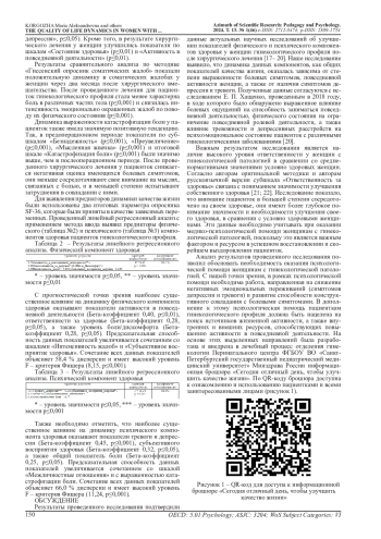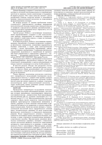 12. Киек М. А., Долгов Г. В. Оценка качества жизни гинекологических пациенток // Сибирский научный медицинский журнал. 2022. №1. EDN: FOQWYW