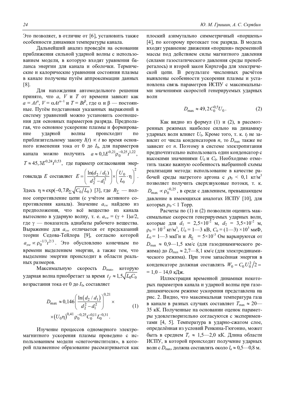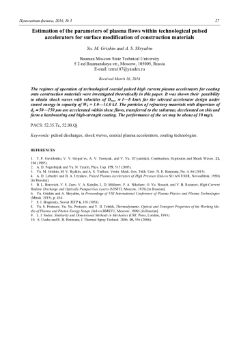 Yu. M. Grishin and A. S. Skryabin Estimation of the parameters of plasma flows within technological pulsed acelerators for surface modification of construction materials 22